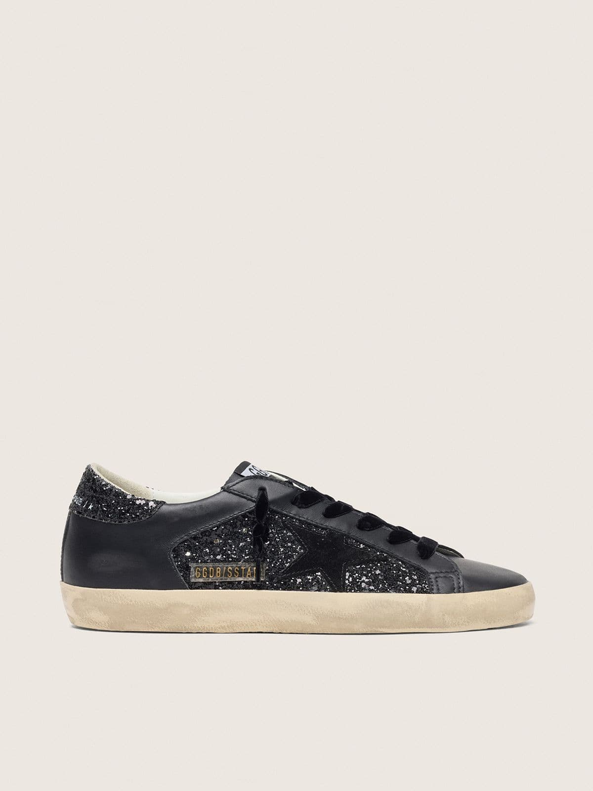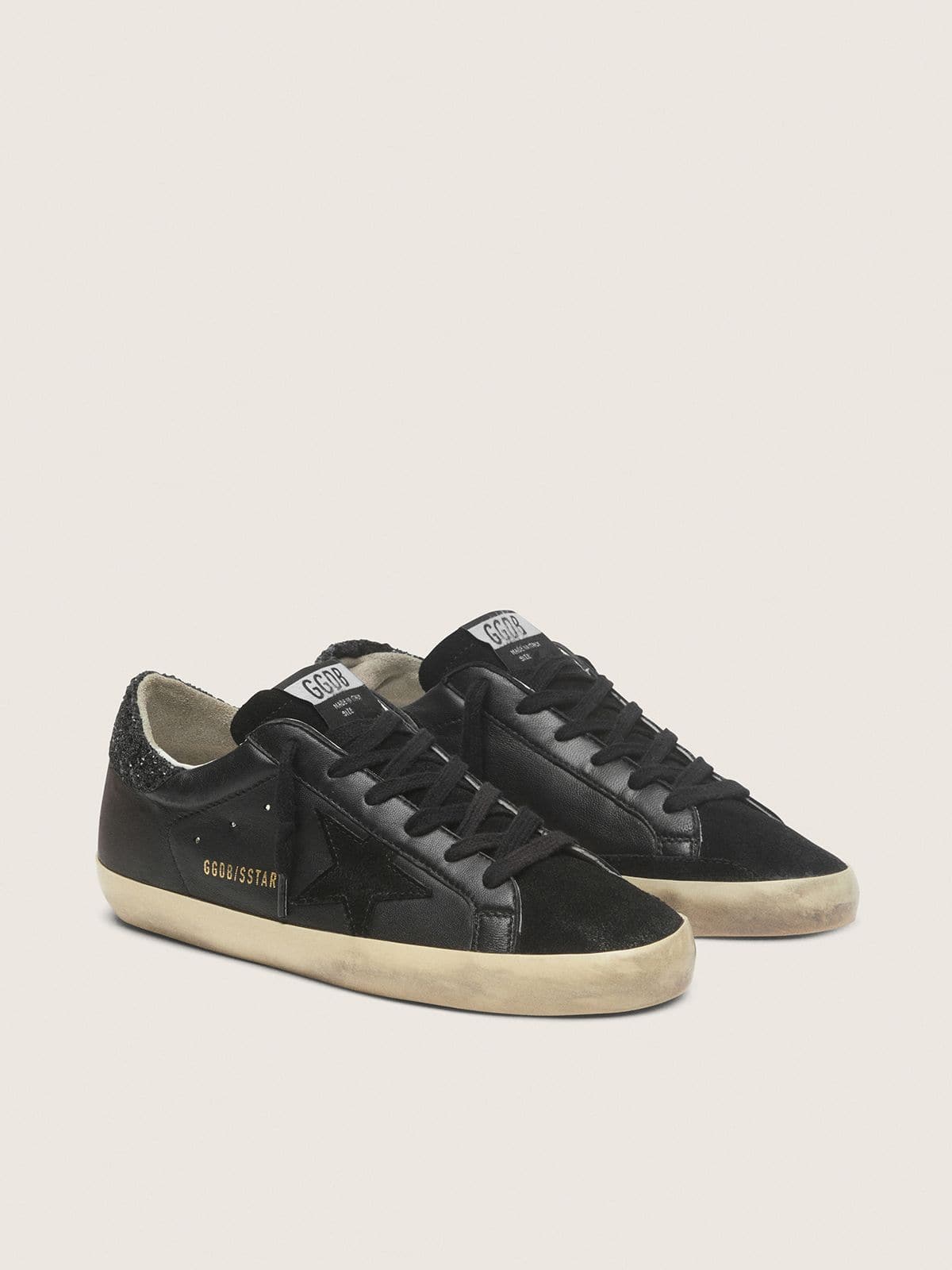 Golden Goose Women's Super-Star In Black Nappa With Black Star And Glitter Heel Tab
