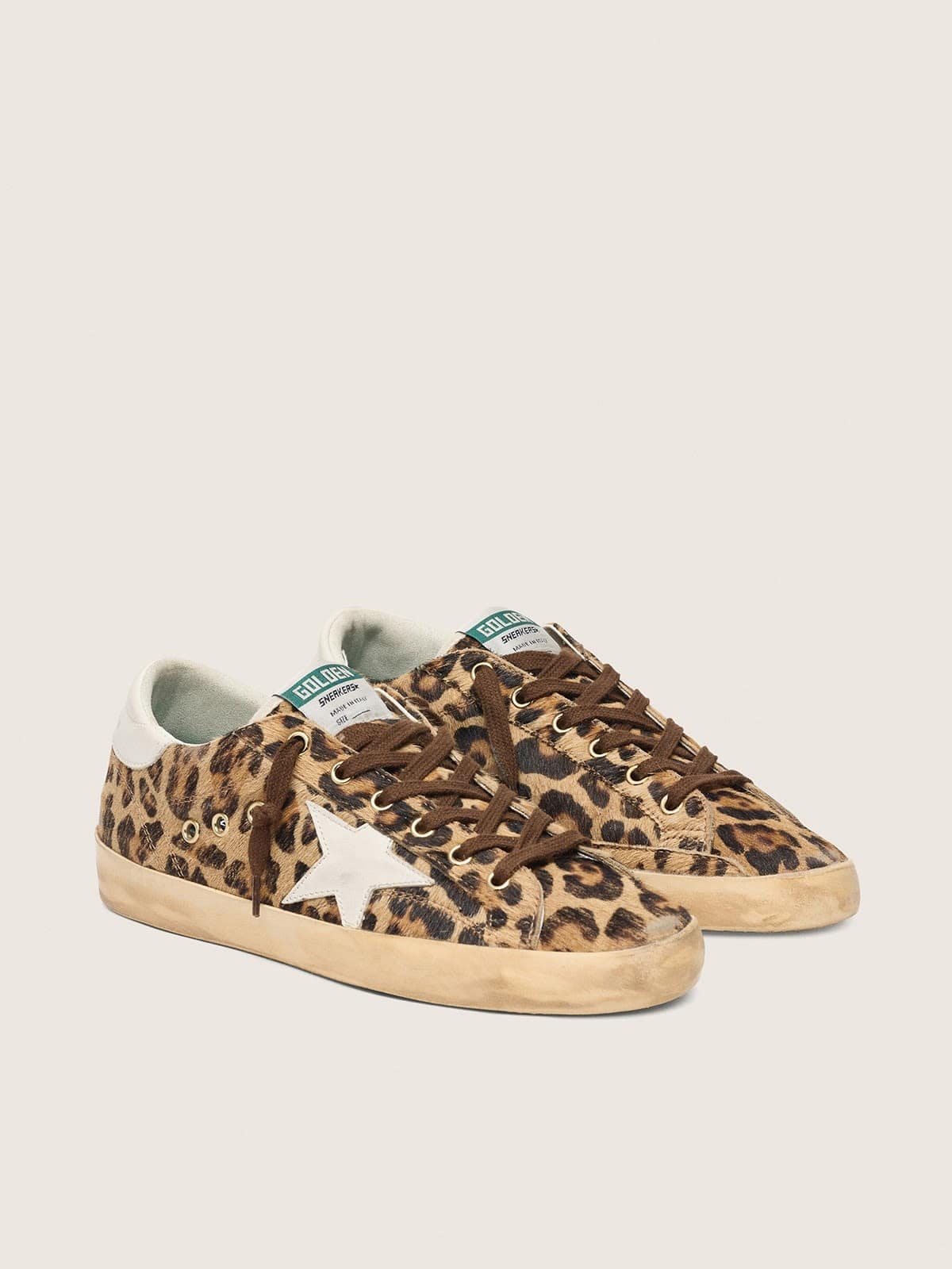 Golden Goose Women’s Super-Star In Leopard-Print Pony Skin With Leather Star And Heel Tab
