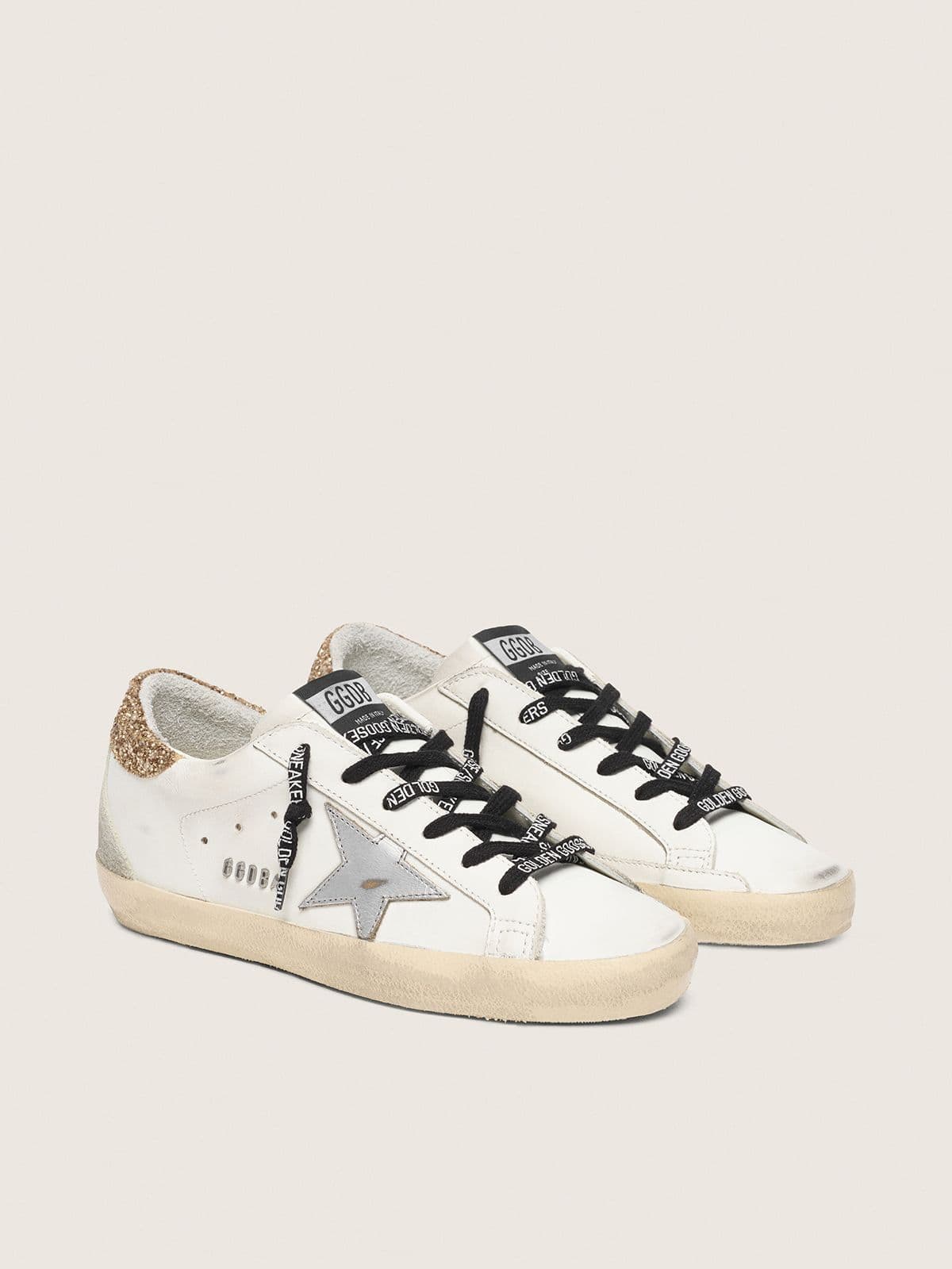 Golden Goose Women's White Leather Super-Star With Glittery Heel Tab