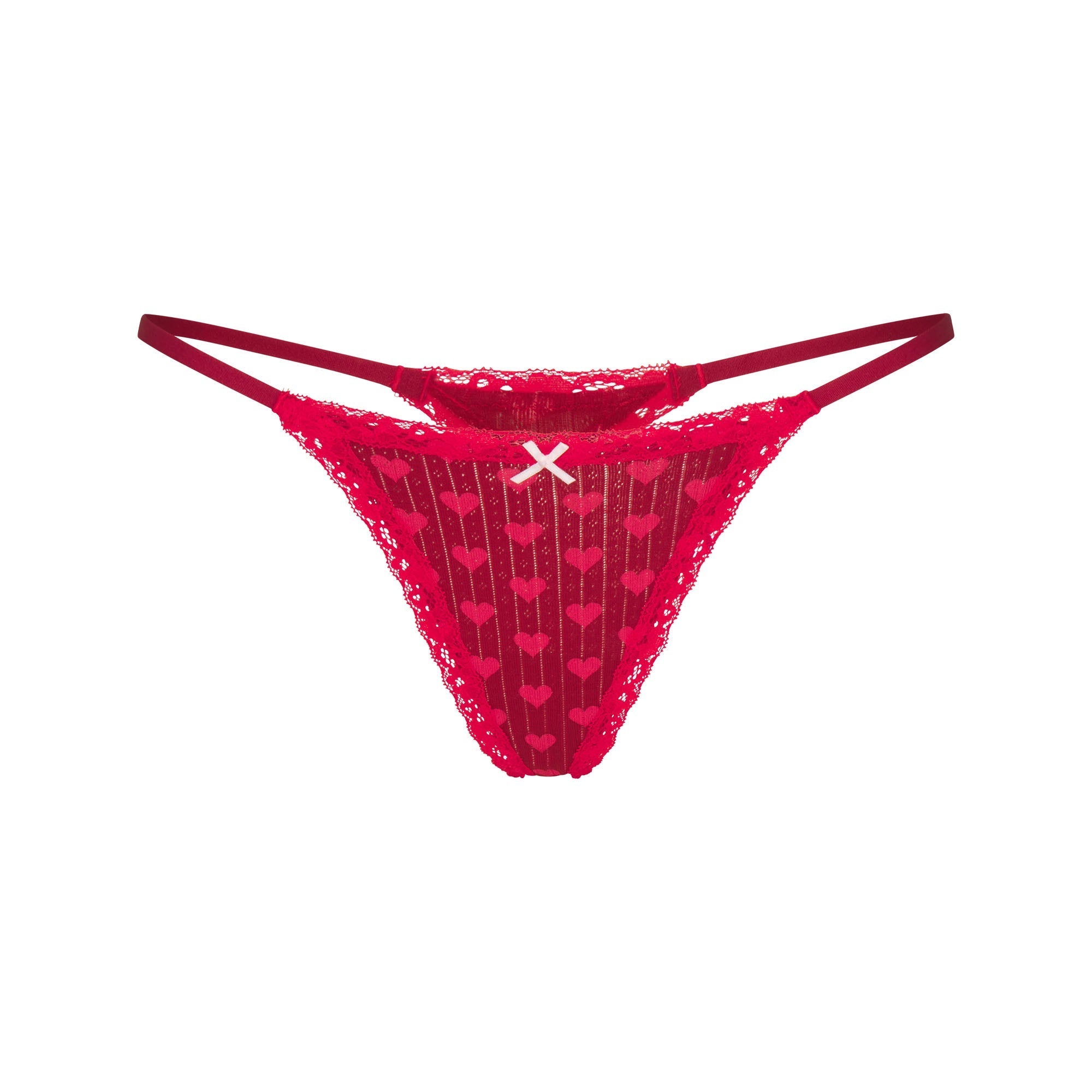 SKIMS LIGHTWEIGHT COTTON POINTELLE LACE STRING THONG | BRICK HEART HALFDROP