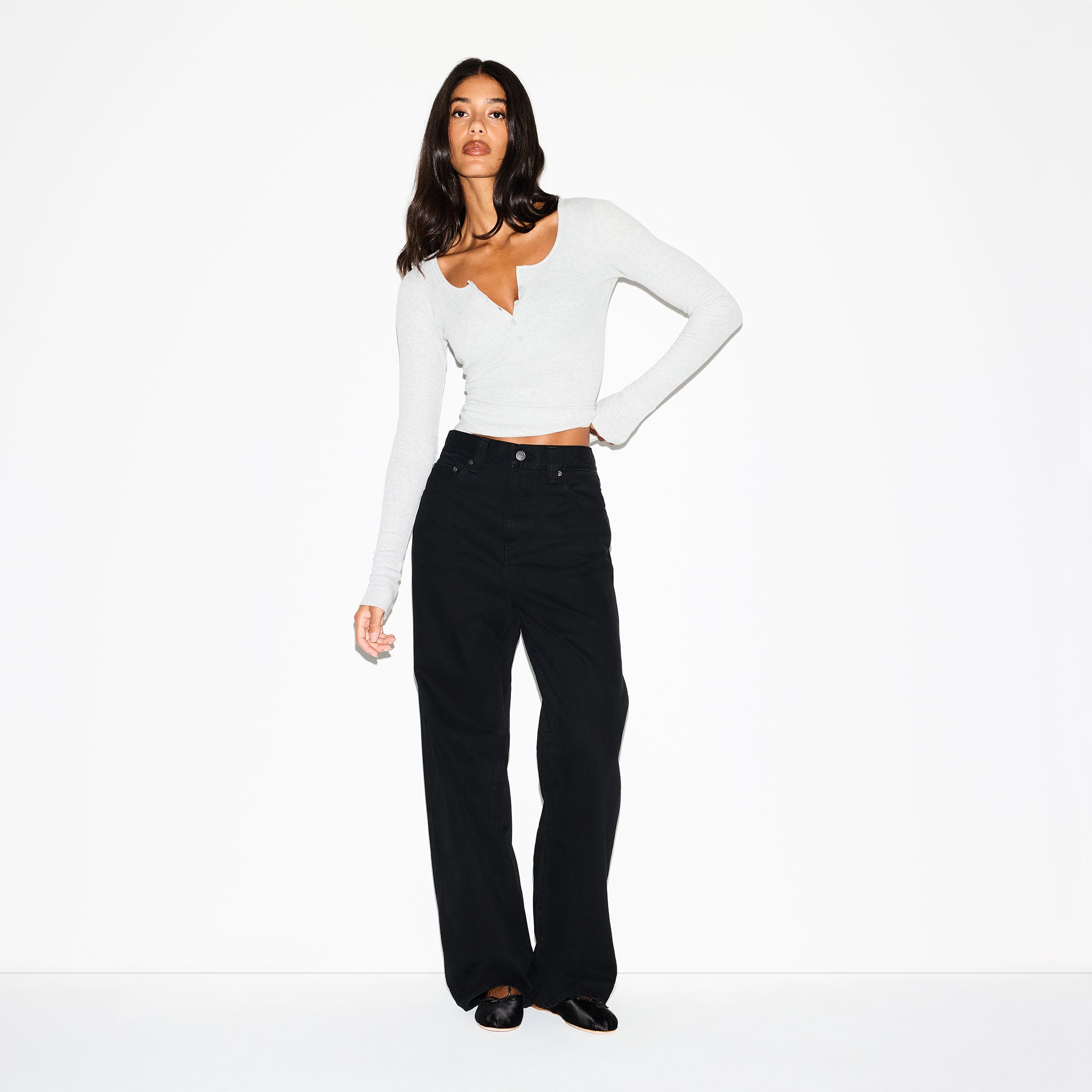 SKIMS COTTON RIB SCOOP NECK HENLEY | LIGHT HEATHER GREY