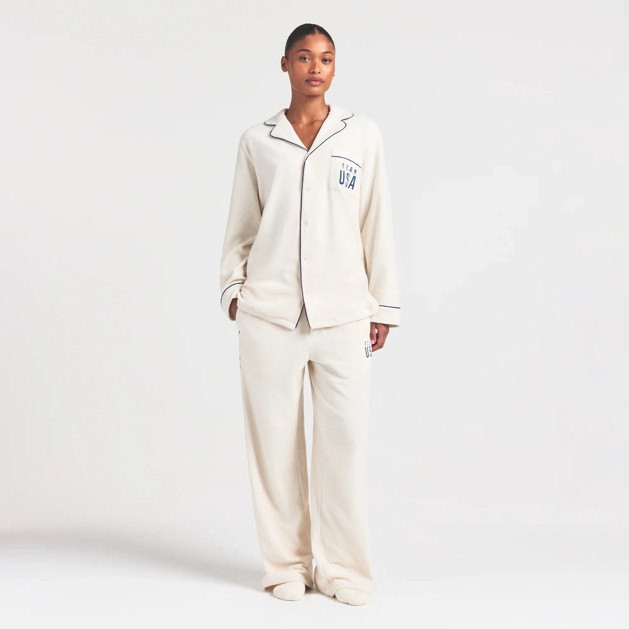 SKIMS FOR TEAM USA FLEECE UNISEX OLYMPIC OVERBedenD SLEEP TOP | ECRU
