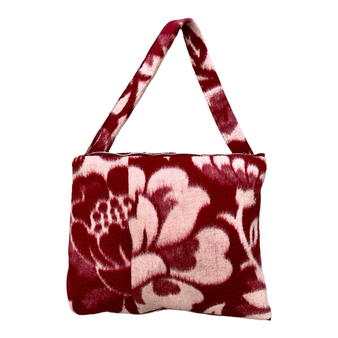 Geleneksel floral motifler modern bir dilde yeniden yorumlanarak zarif ve keskin bir denge oluşturur. Özenle seçilmiş vintage kumaşlar ve dikkatli işçilik, parçanın karakterini ve dayanıklılığını güçlendirir. Şarap tonunda bir fermuar estetik bir tamamlayıcı olarak tasarıma müdahale eder.