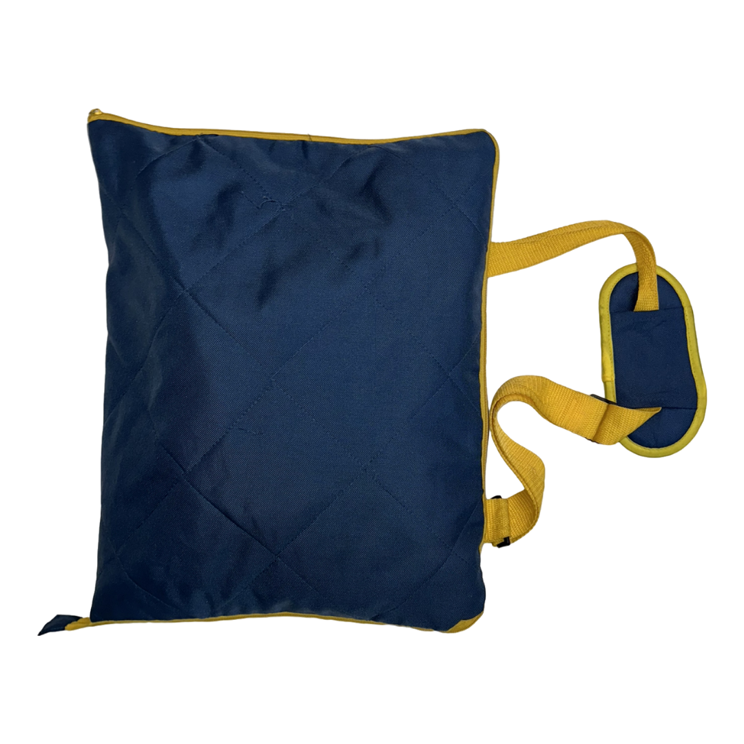 Her parça dünya genelinden temin edilen vintage kumaşlardan titizlikle üretilir; her biri benzersiz bir geçmiş ve karakter taşır. Lacivert zemin üzerindeki sarı, yeşil ve kırmızı tonları dengeli bir görsel canlılık sunar ve el işçiliği detayları estetik ile dayanıklılığı birleştirir. Vintage materyallerin doğası gereği baskılarda nadiren renk farklılıkları görülebilir, bu da parçanın özgünlüğünün bir parçasıdır.