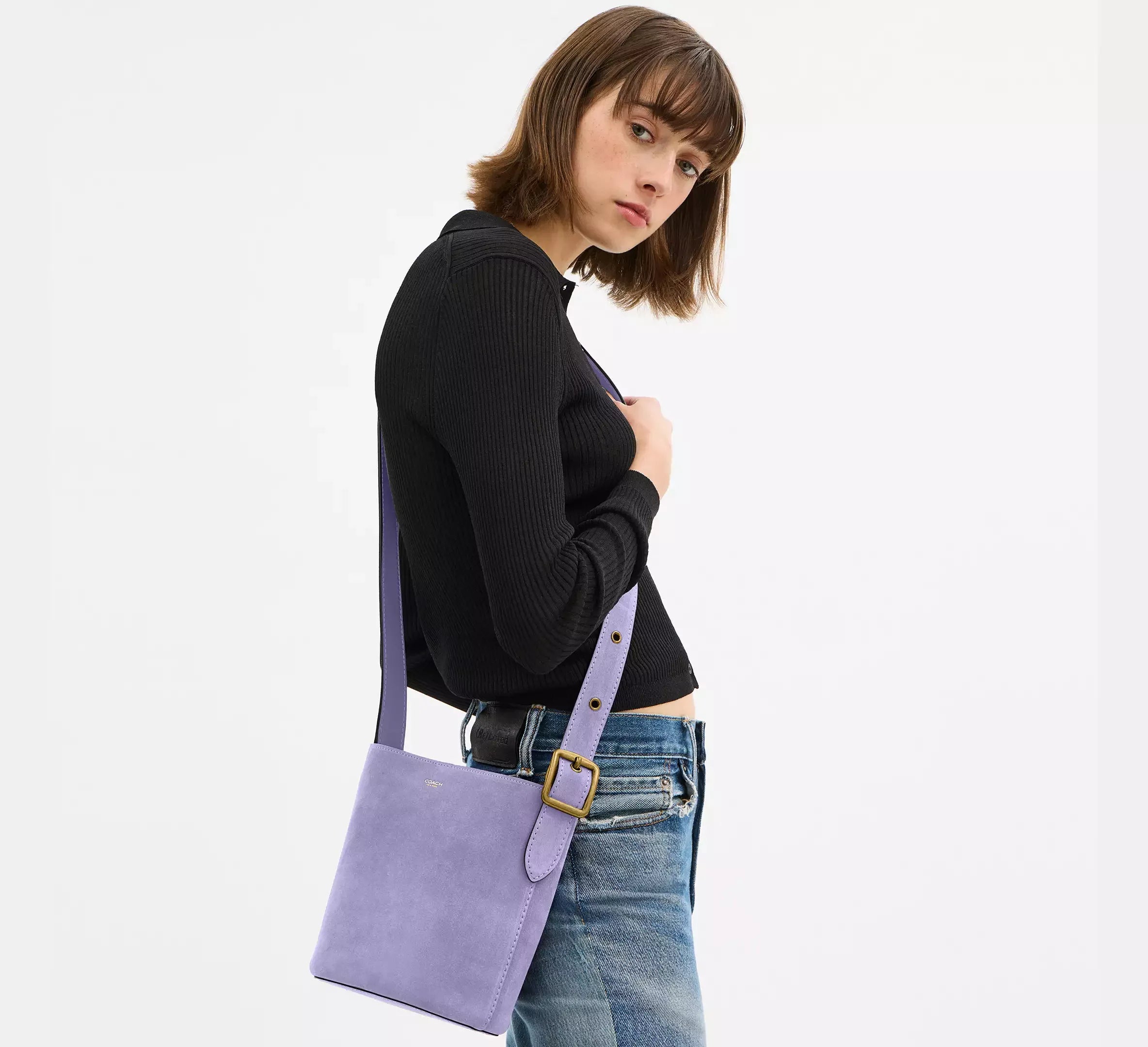 Coach Bleecker Bucket Bag 21 – Suede/Brass/Violet Mist