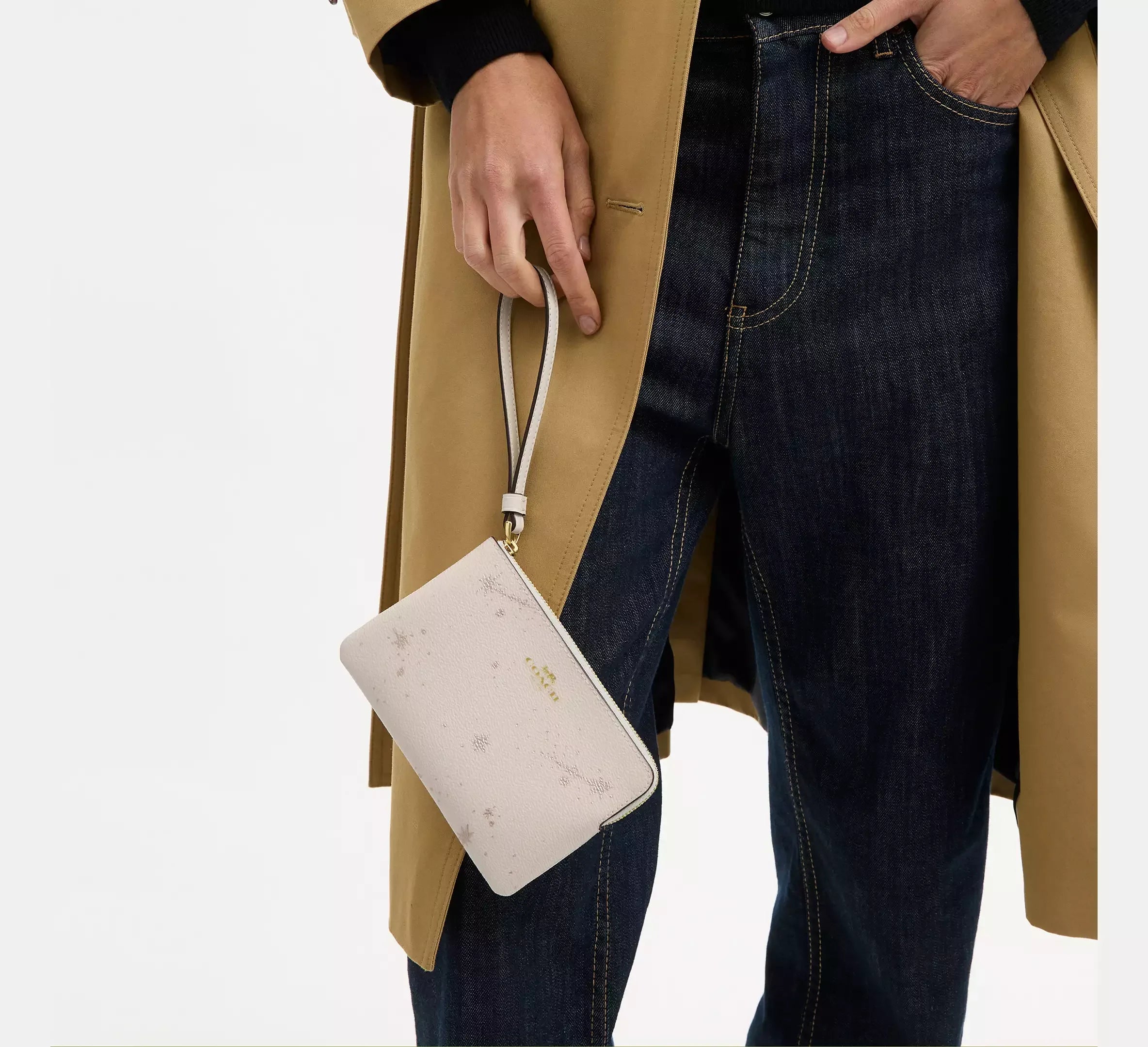 Coach Corner Zip Wristlet With Star Print – Gold/Chalk Multi