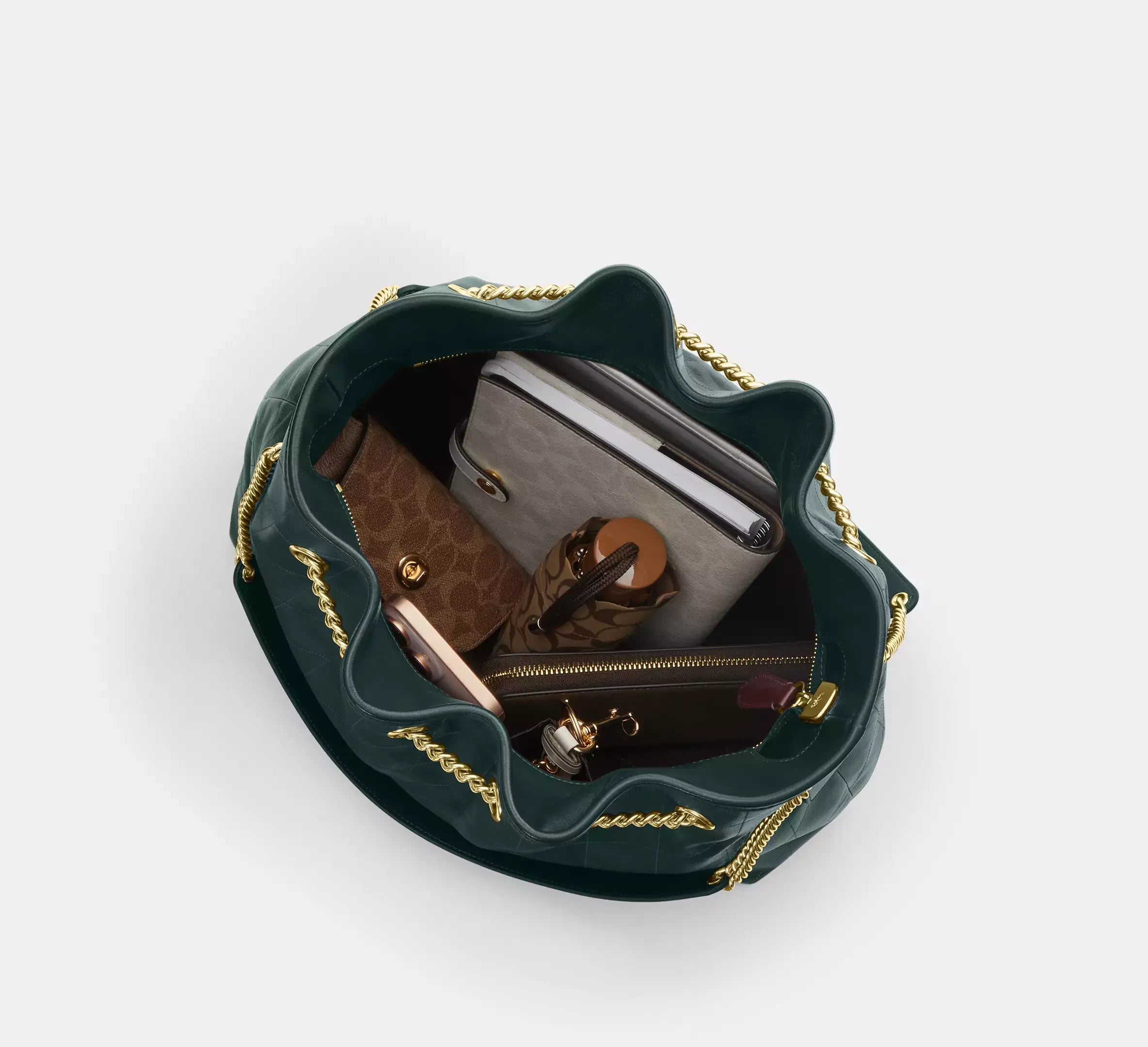 Coach Evelyn Large Shoulder Bag With Quilting – Gold/Dark Teal