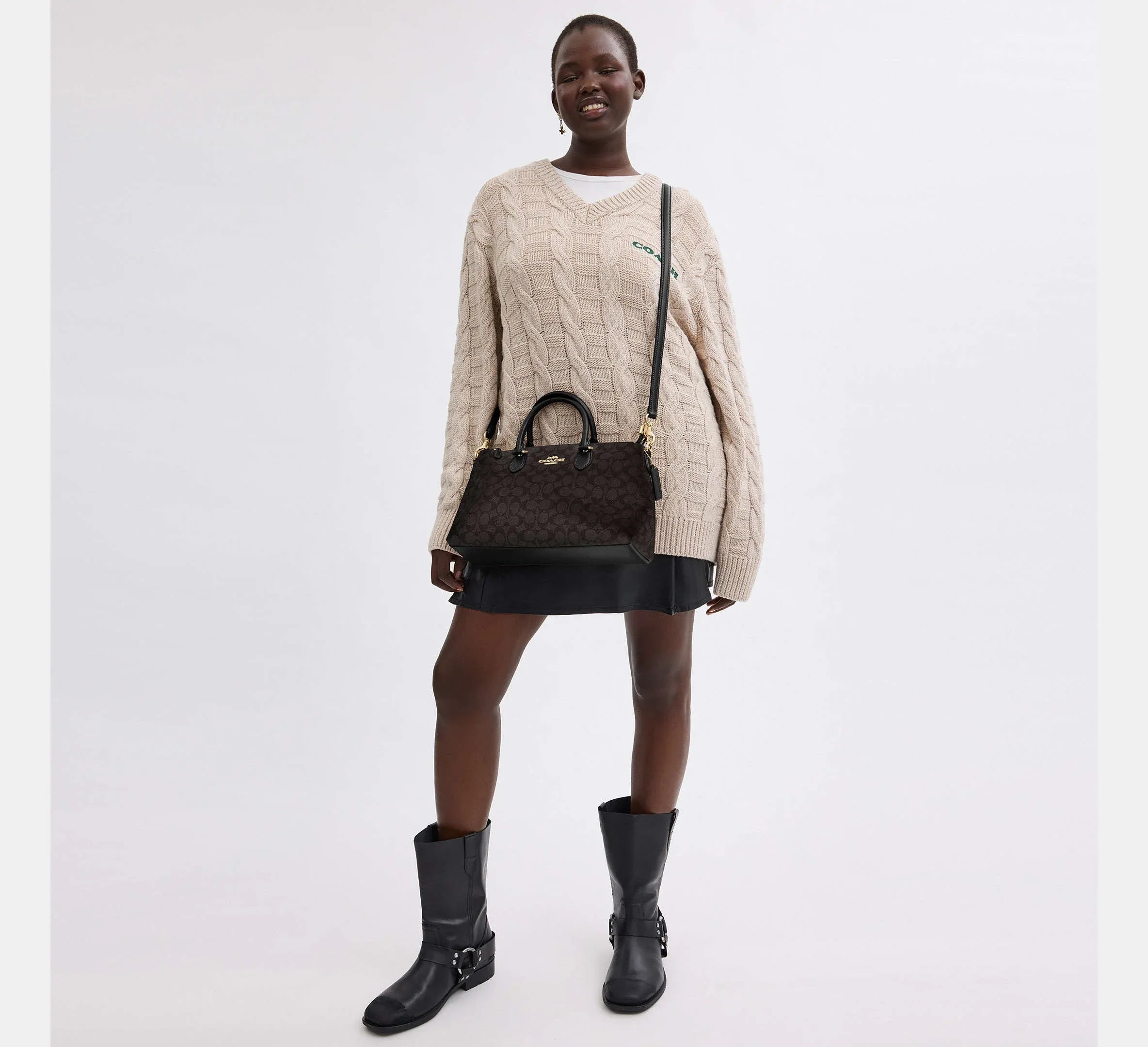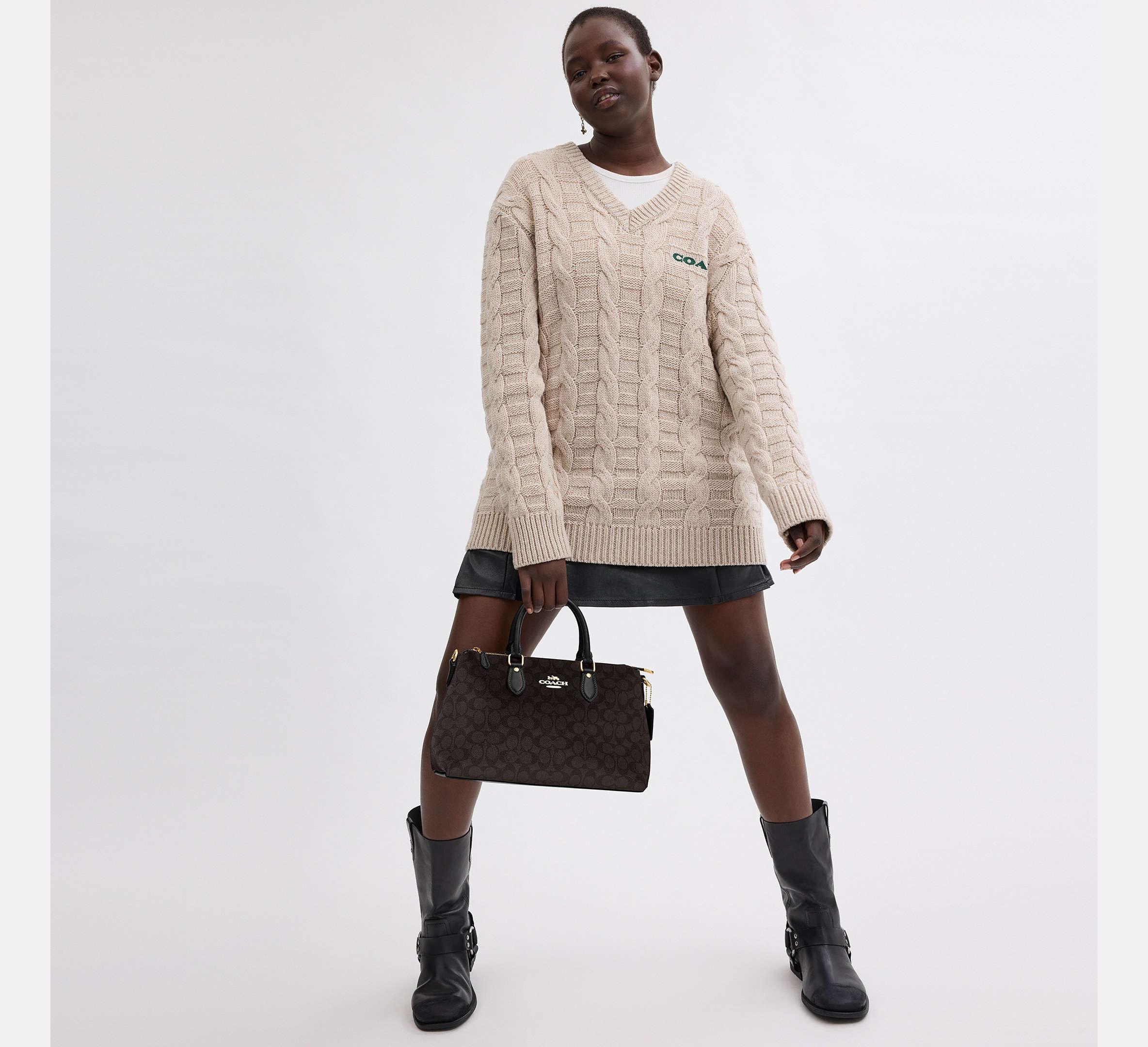 Coach Georgia Satchel Bag In Signature – Gold/Walnut/Black