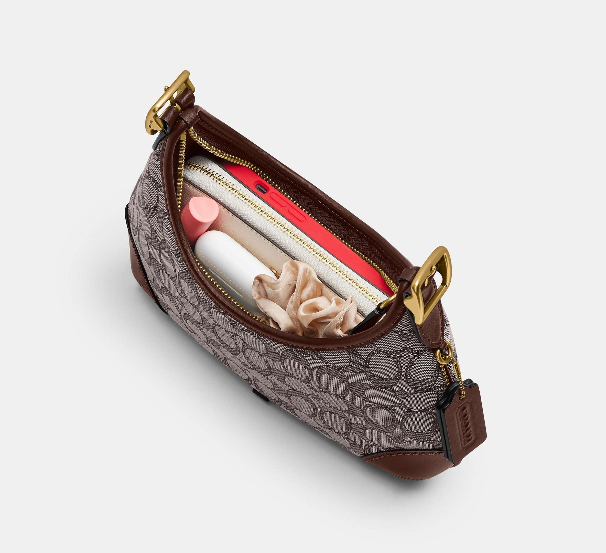 Coach Hamptons Hobo Bag In Signature Jacquard – Brass/Oak Maple
