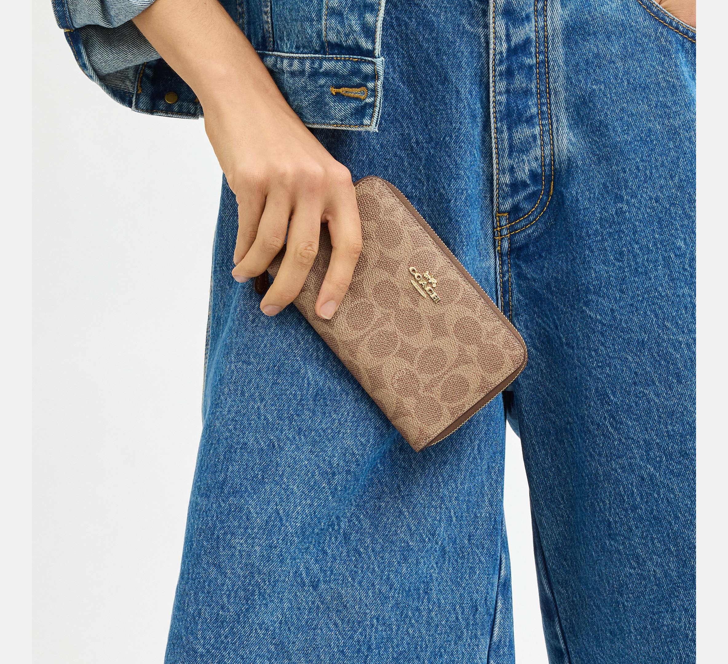 Coach Medium Id Zip Wallet In Signature – Gold/Tan/Brown