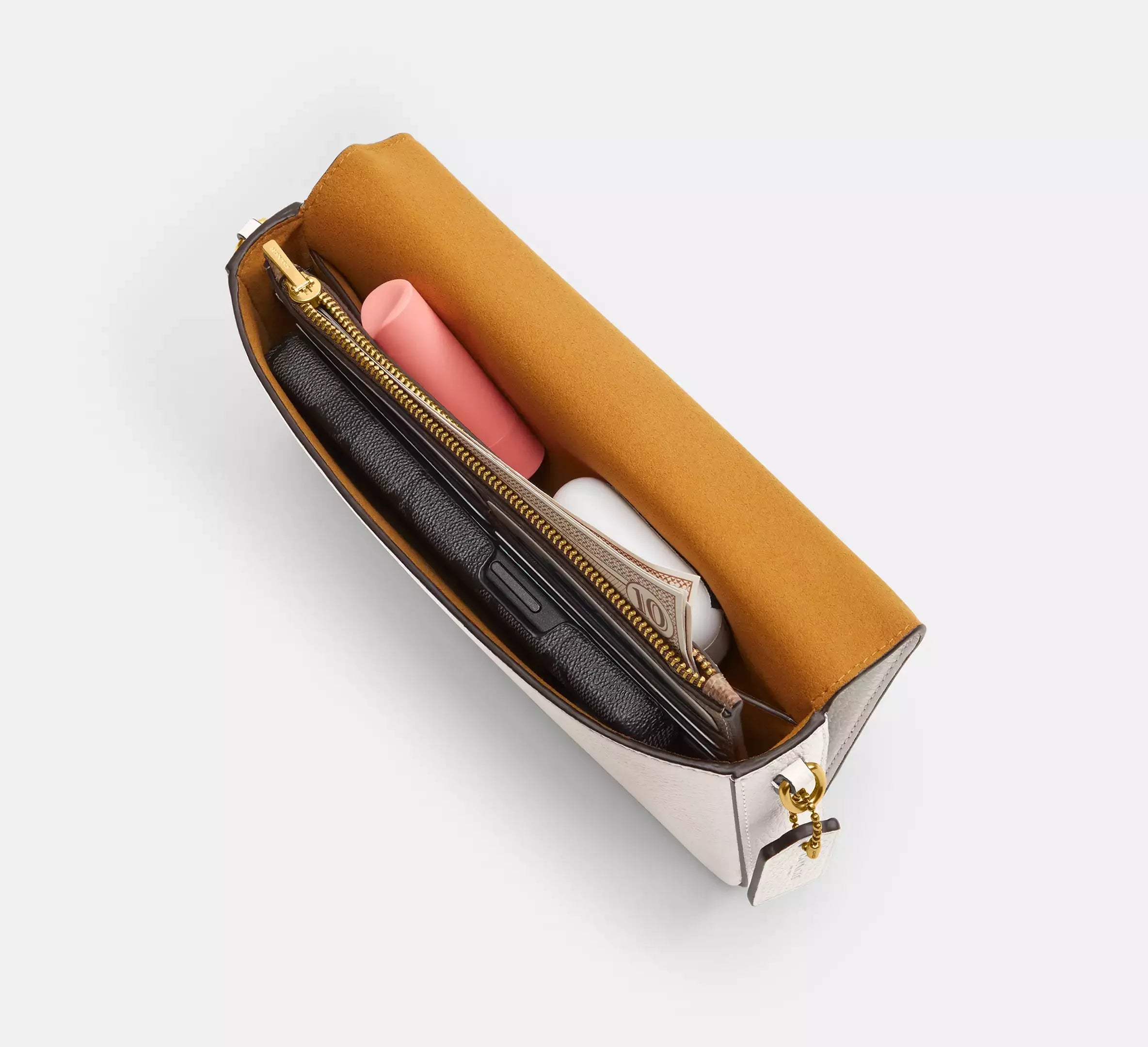 Bu çanta, parlak dokulu pebble deri ve Signature kaplamalı kanvasın mükemmel birleşimiyle üretilmiştir. El işçiliği ile oluşturulan detaylar, estetik dengeyi sağlarken, şıklığı da ön plana çıkarır.