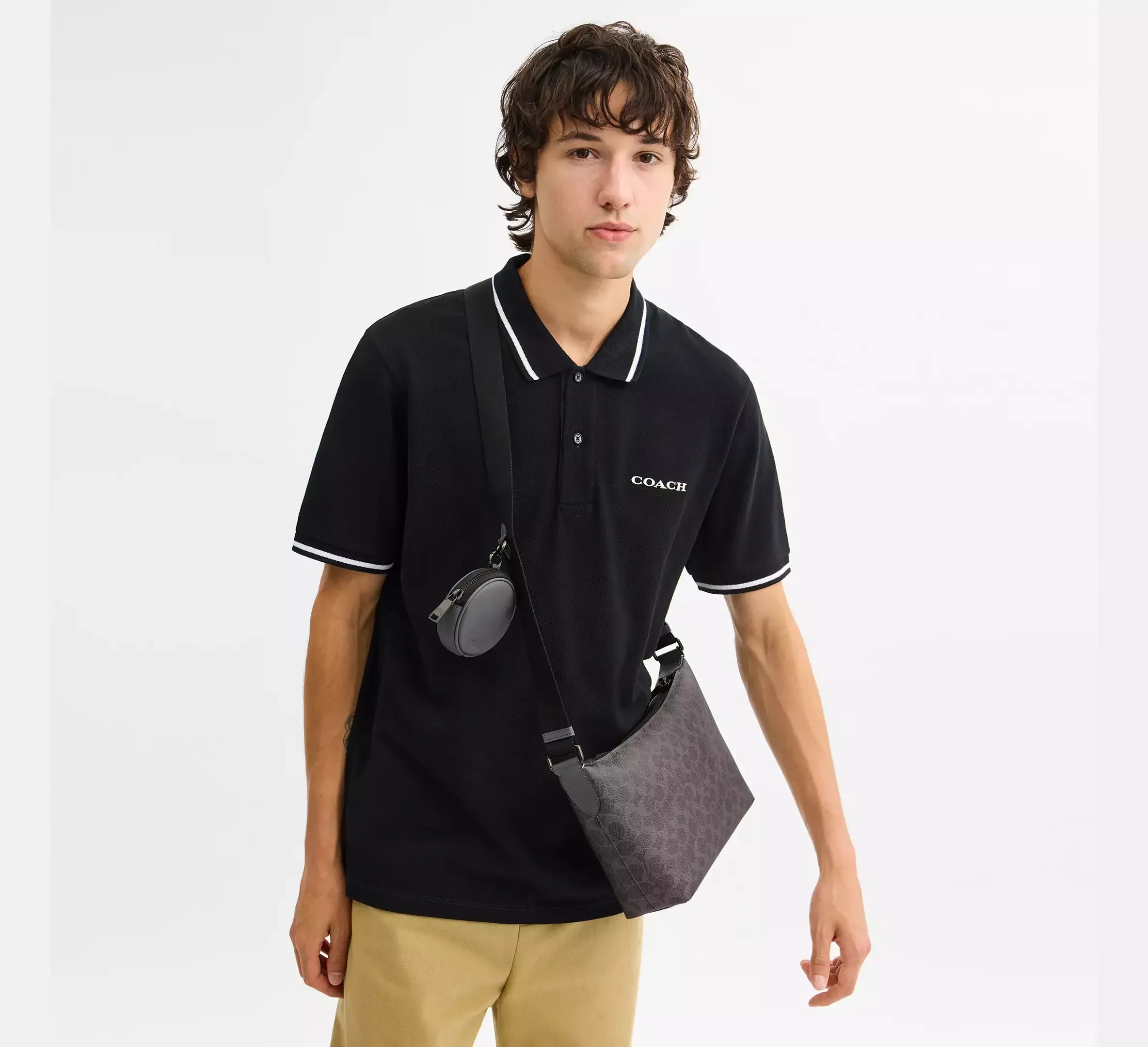 Coach Small Finn Crossbody Bag With Pouch In Signature – Gunmetal/Grey/Charcoal