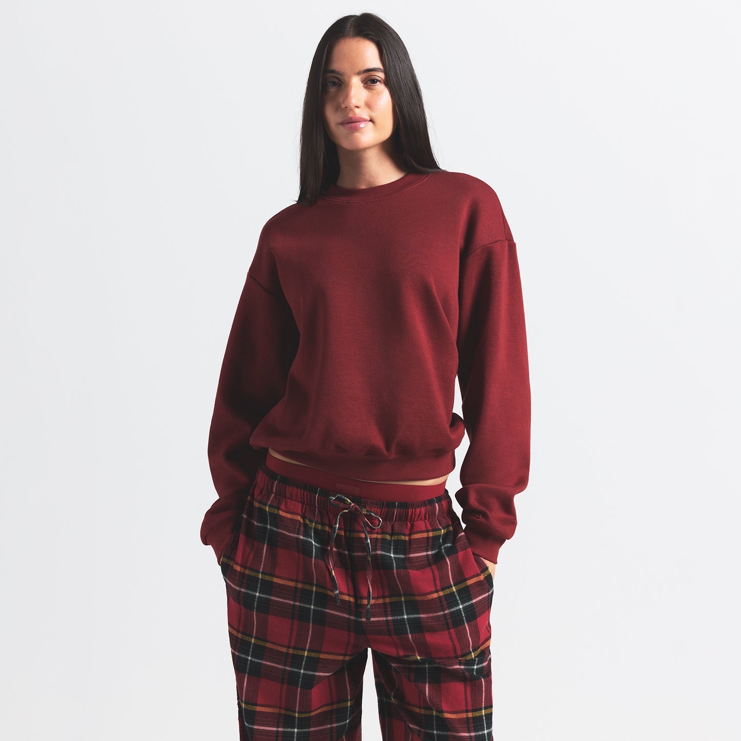 SKIMS COTTON FLEECE CLASSIC CREWNECK | MERLOT