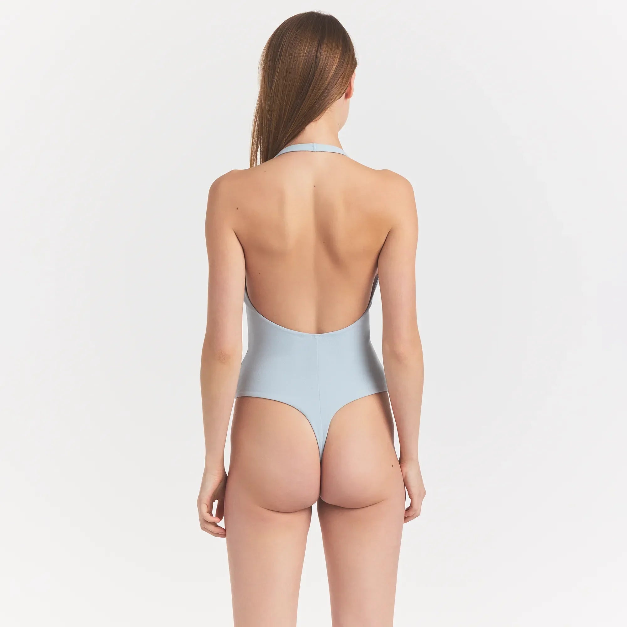 SKIMS COTTON JERSEY DEEP PLUNGE HALTER BODYSUIT | OPAL SUMMER EIGHTY