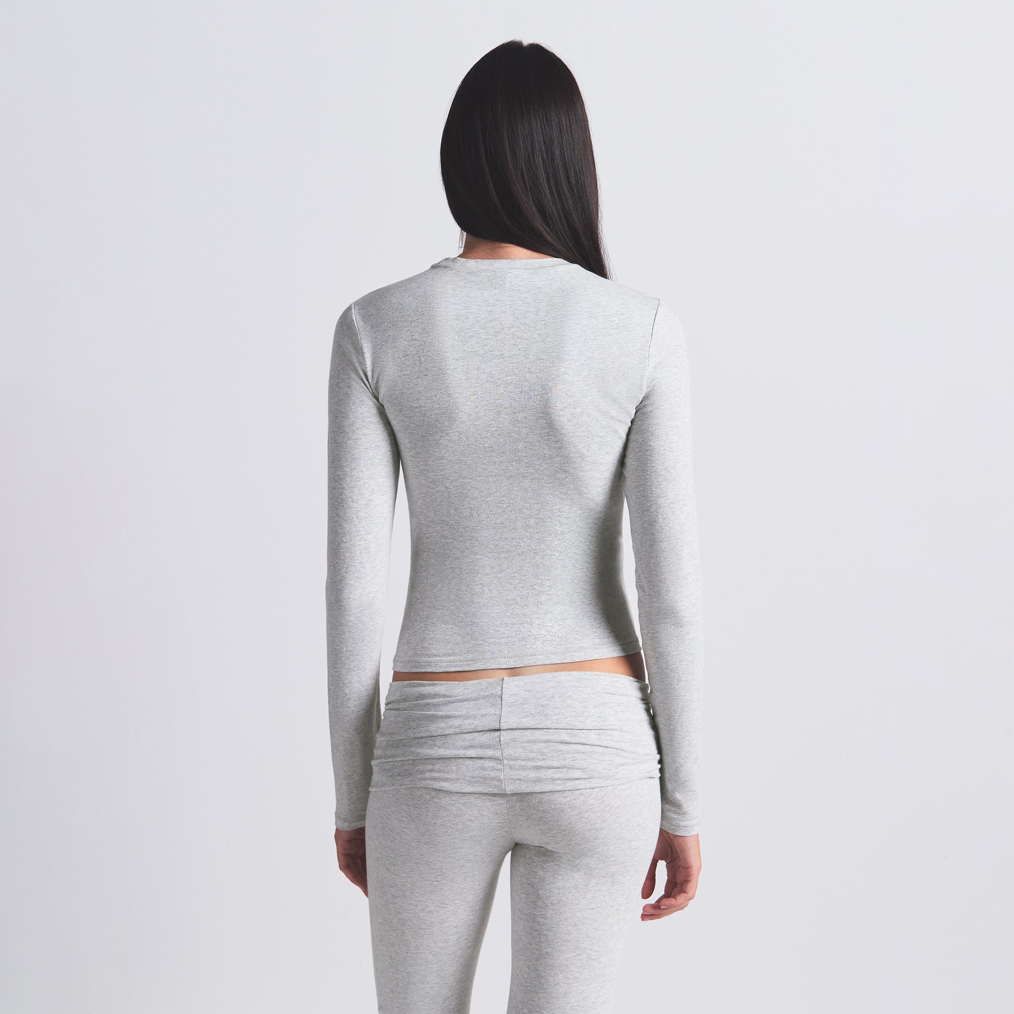 SKIMS COTTON JERSEY LONG SLEEVE T-SHIRT | LIGHT HEATHER GREY