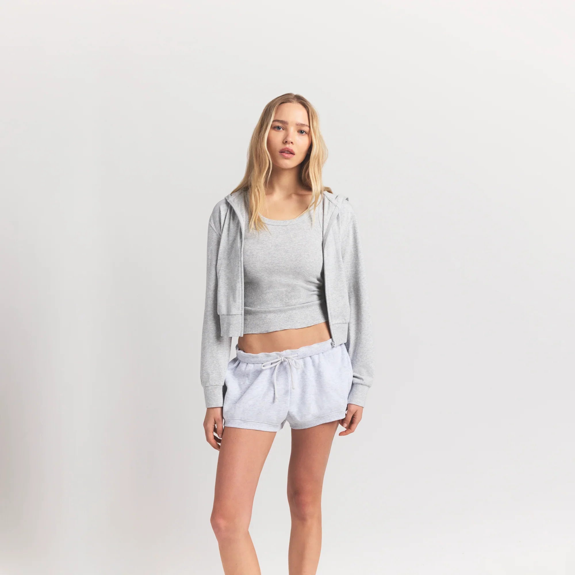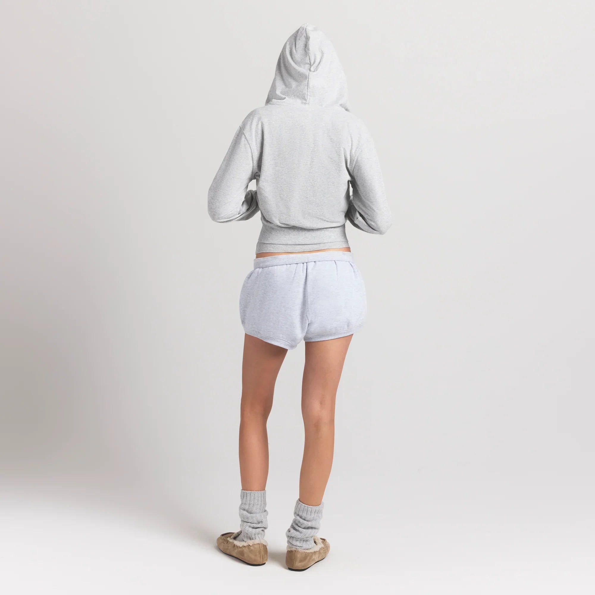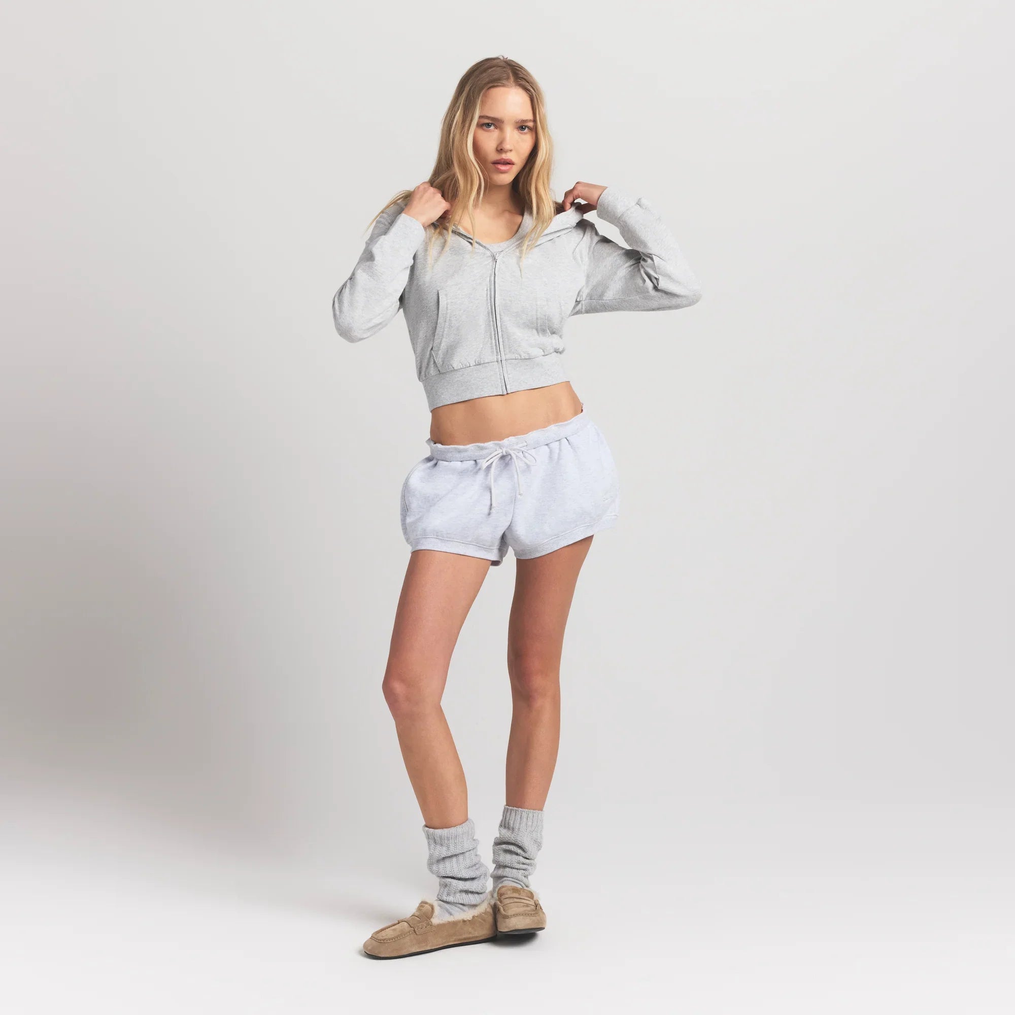SKIMS COTTON JERSEY ZIP UP HOODIE | LIGHT HEATHER GREY