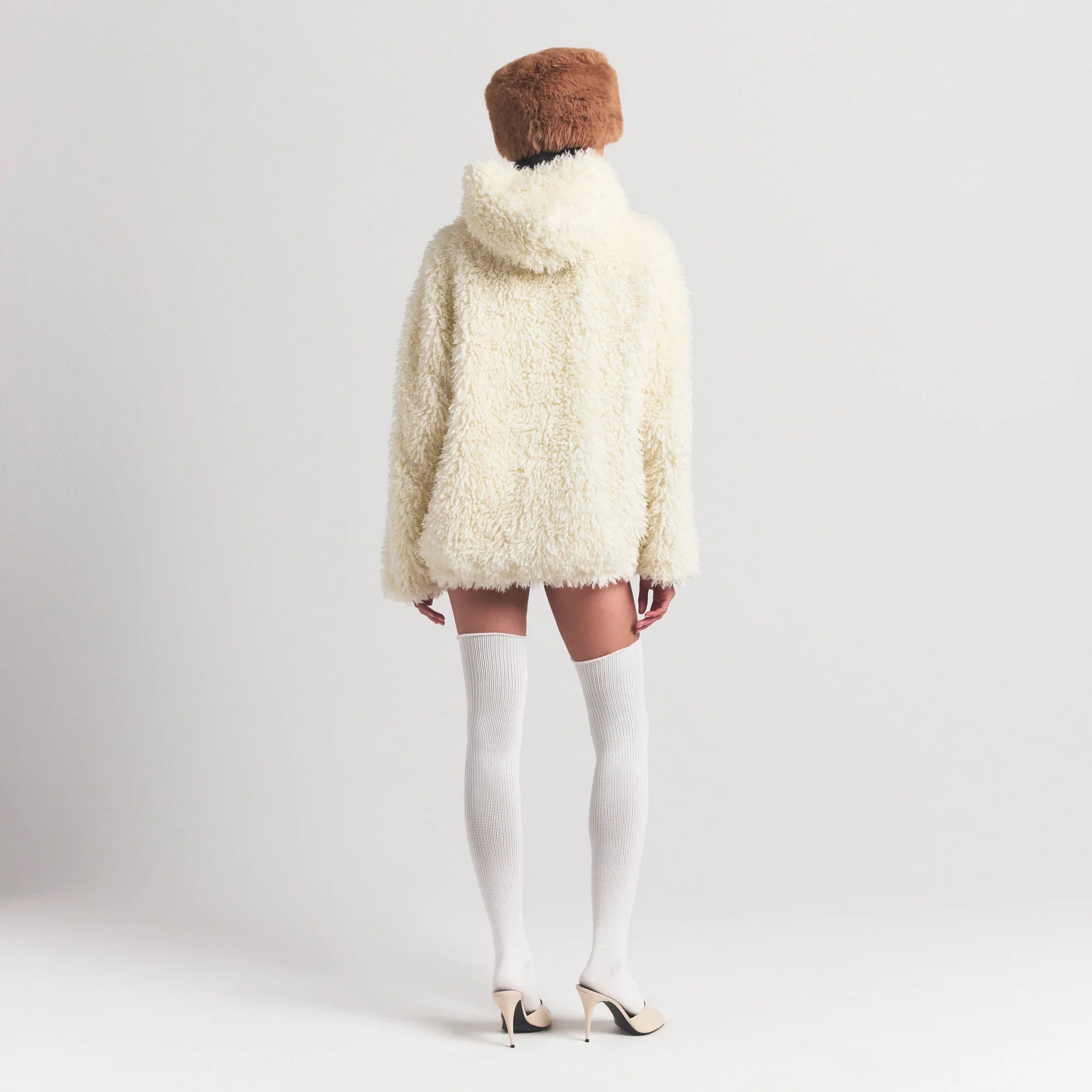 SKIMS FAUX FUR HOODIE | EGRET