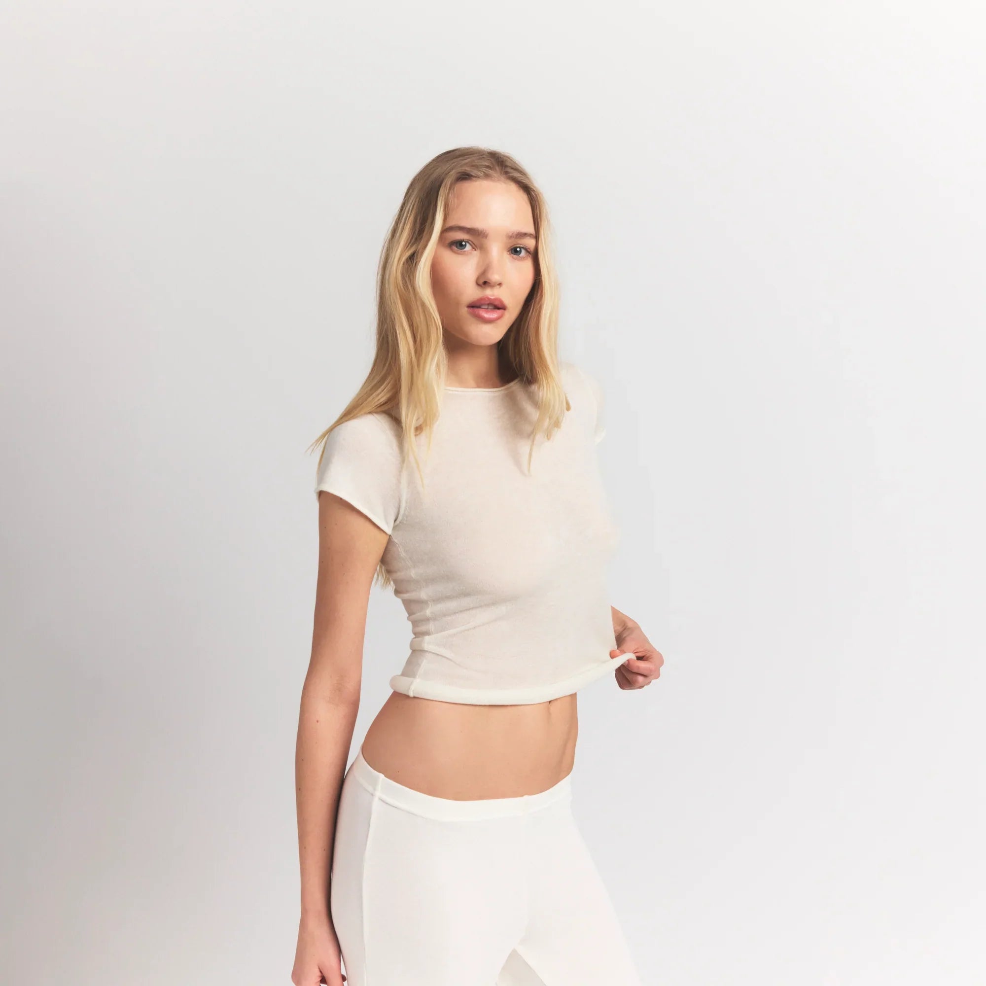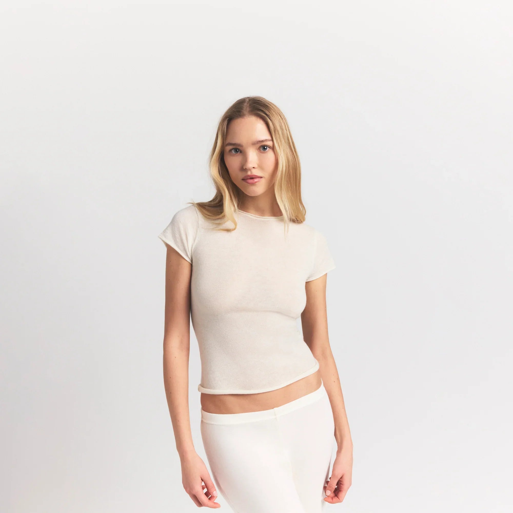 SKIMS FEATHERWEIGHT CASHMERE TEE | EGRET