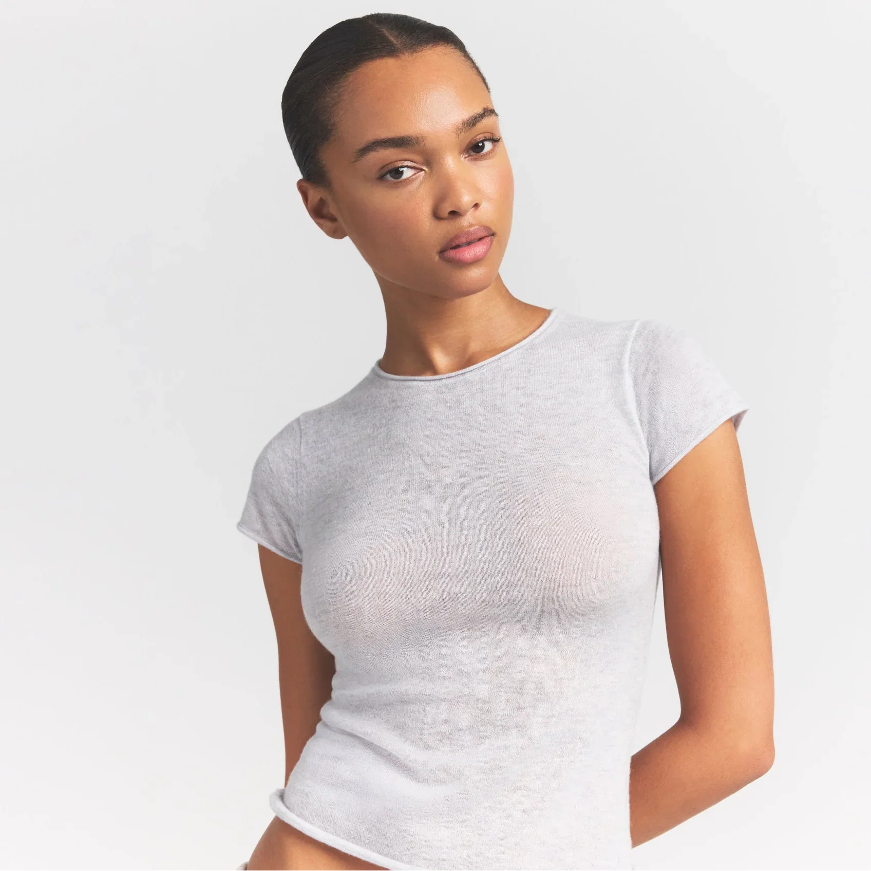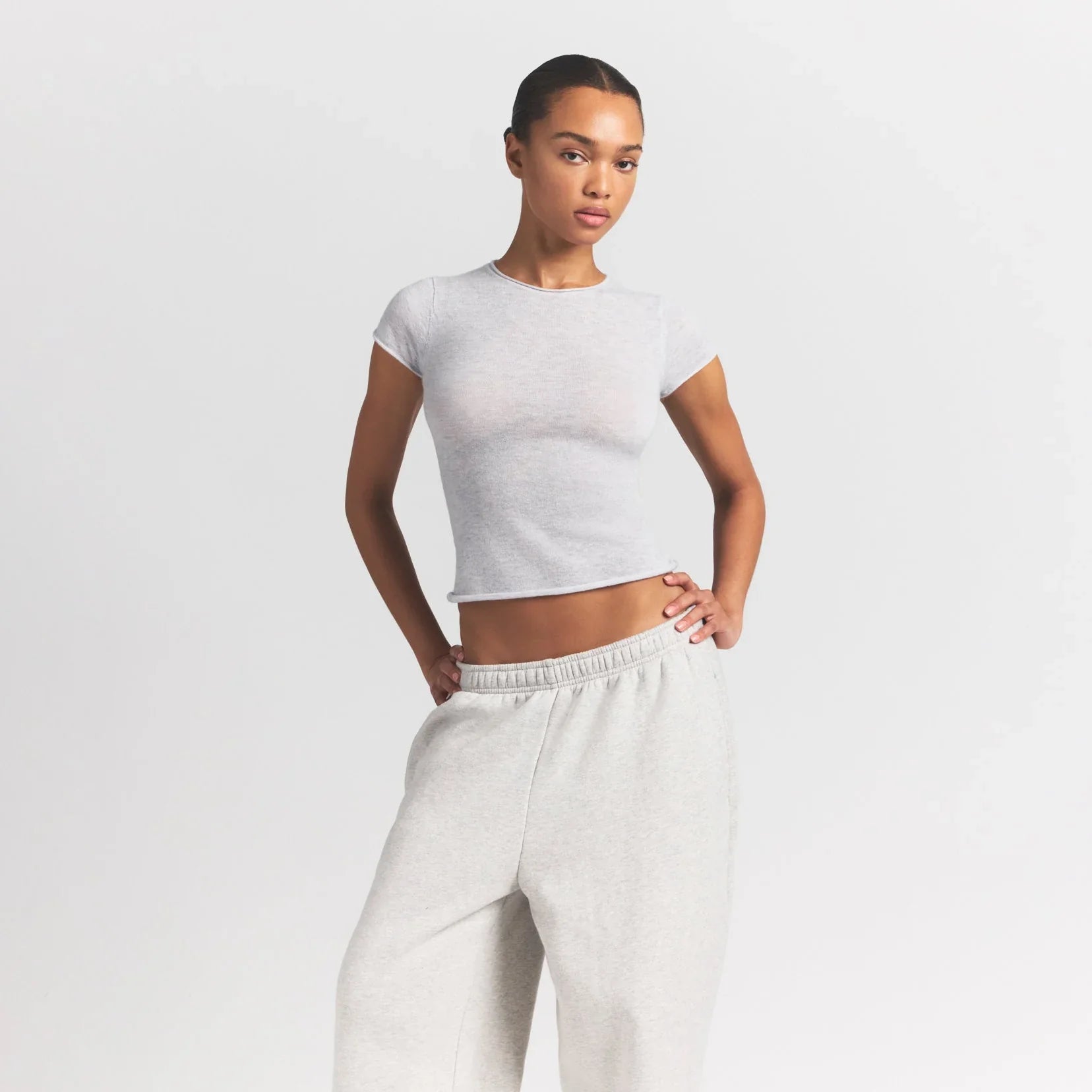 SKIMS FEATHERWEIGHT CASHMERE TEE | LIGHT HEATHER GREY