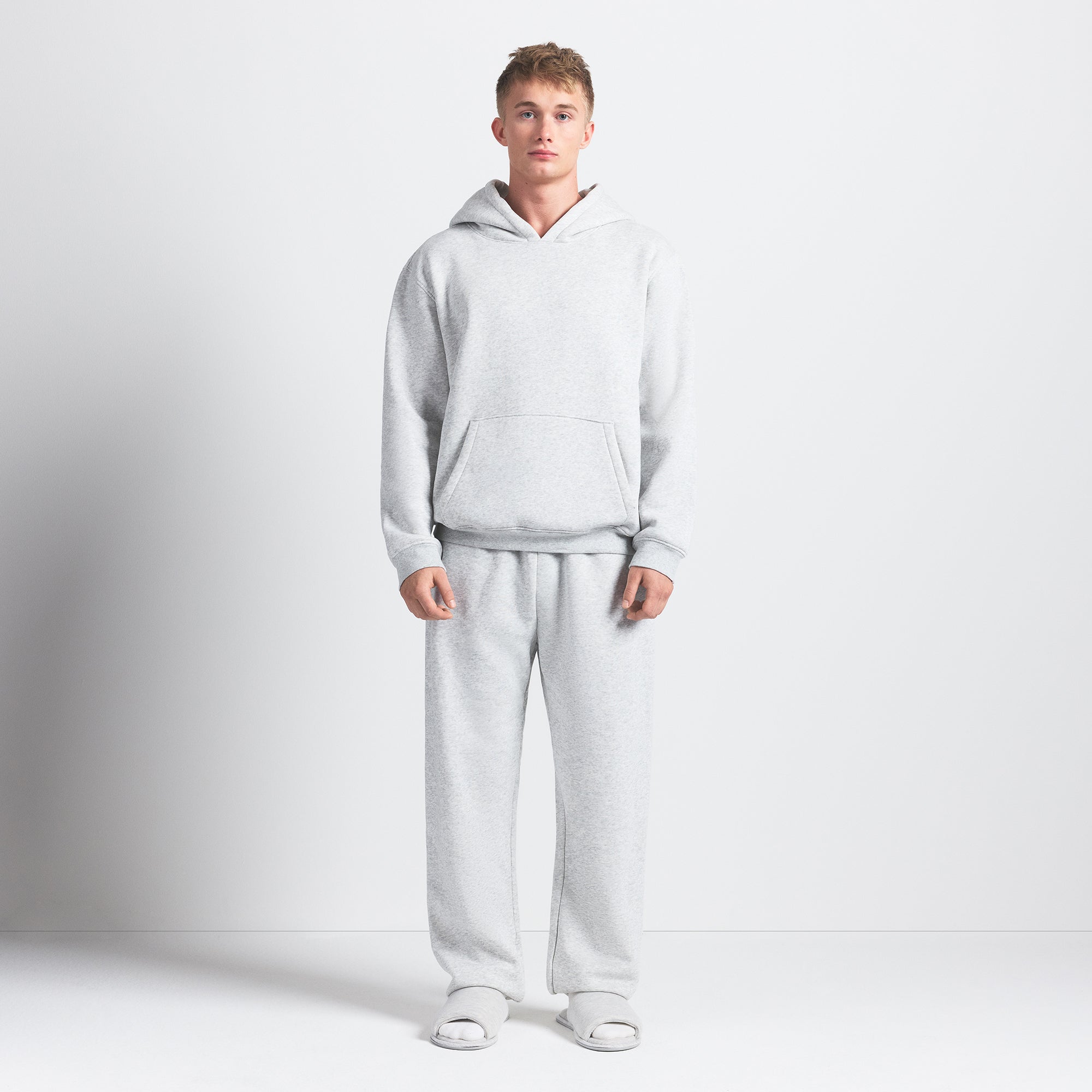 SKIMS FLEECE LOUNGE MENS RELAXED HOODIE | LIGHT HEATHER GREY