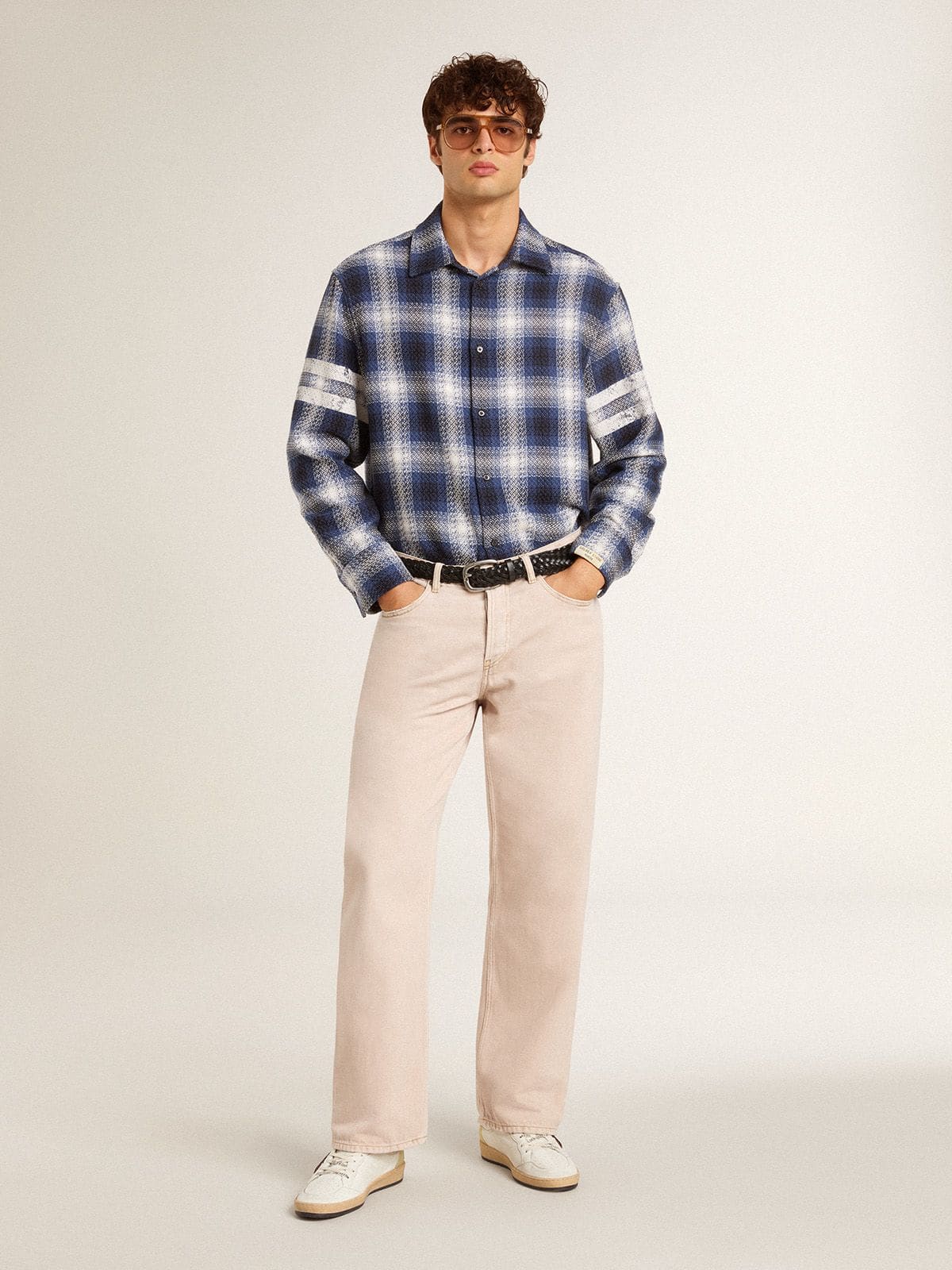 Golden Goose Men’s Ball Star LTD With Mesh Star And Midnight Blue Leather Heel Tab