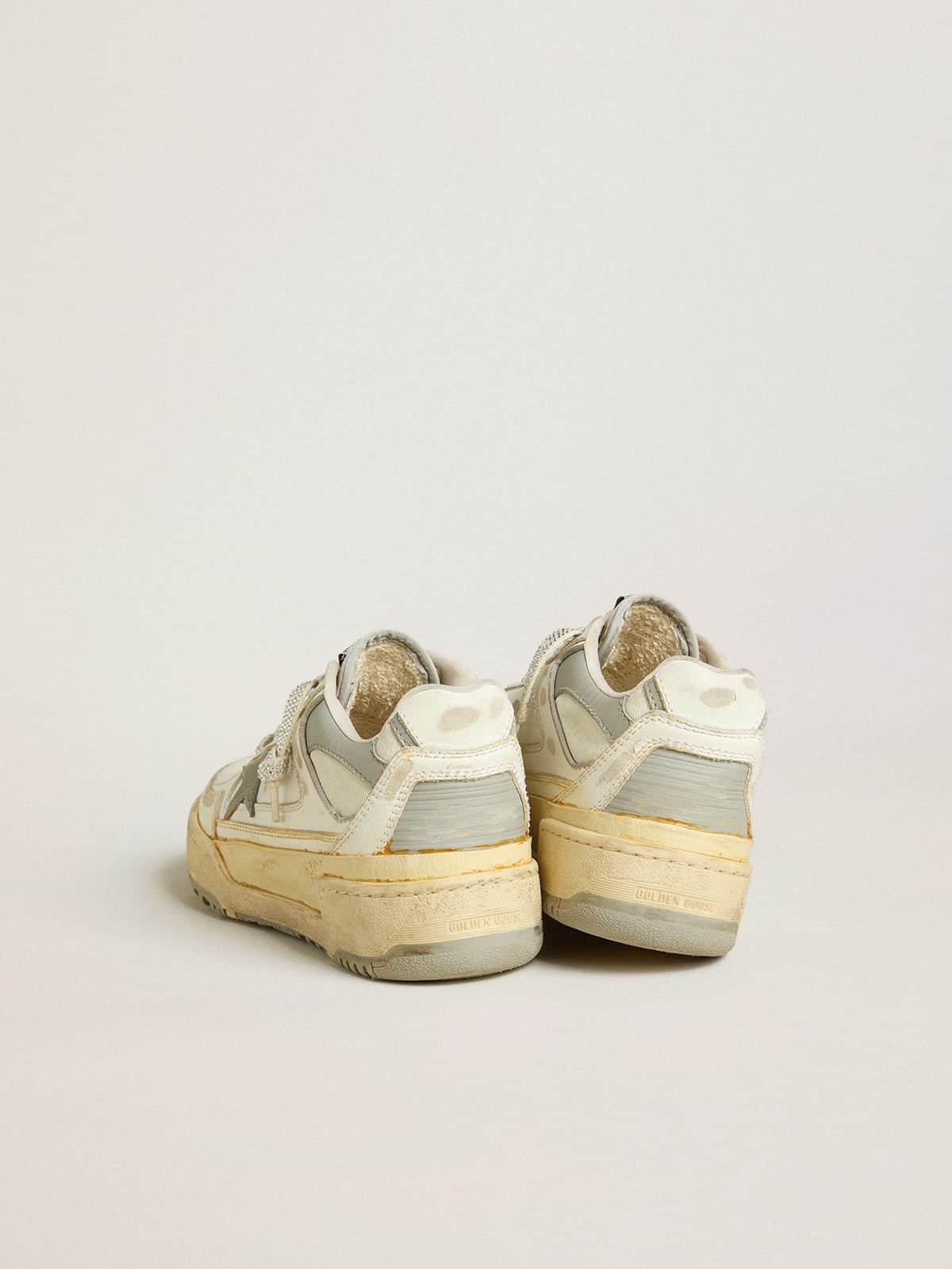 Golden Goose Men’s Forty2 In White Leather With Laces With Swarovski Crystals And Gray TPU Star