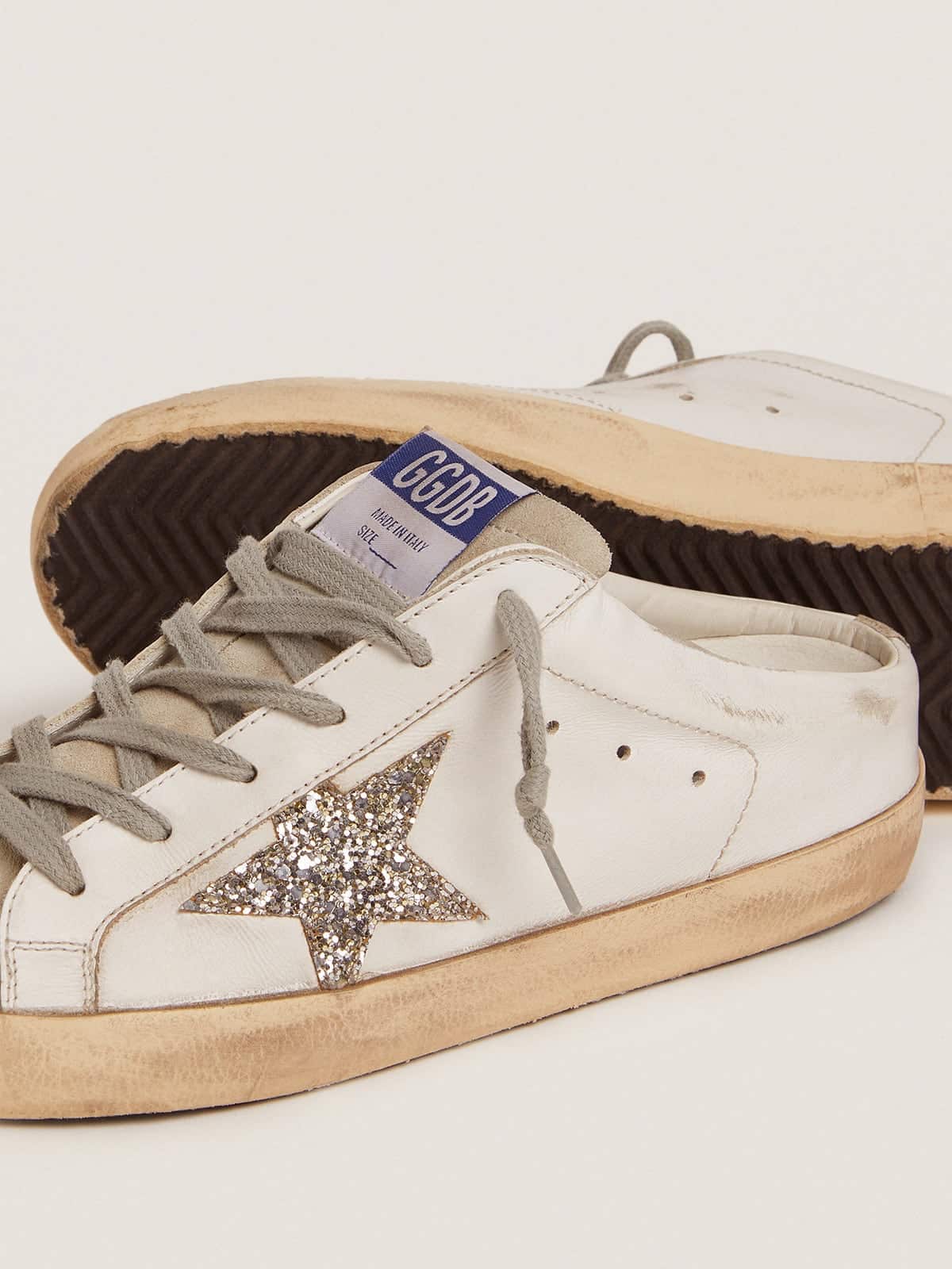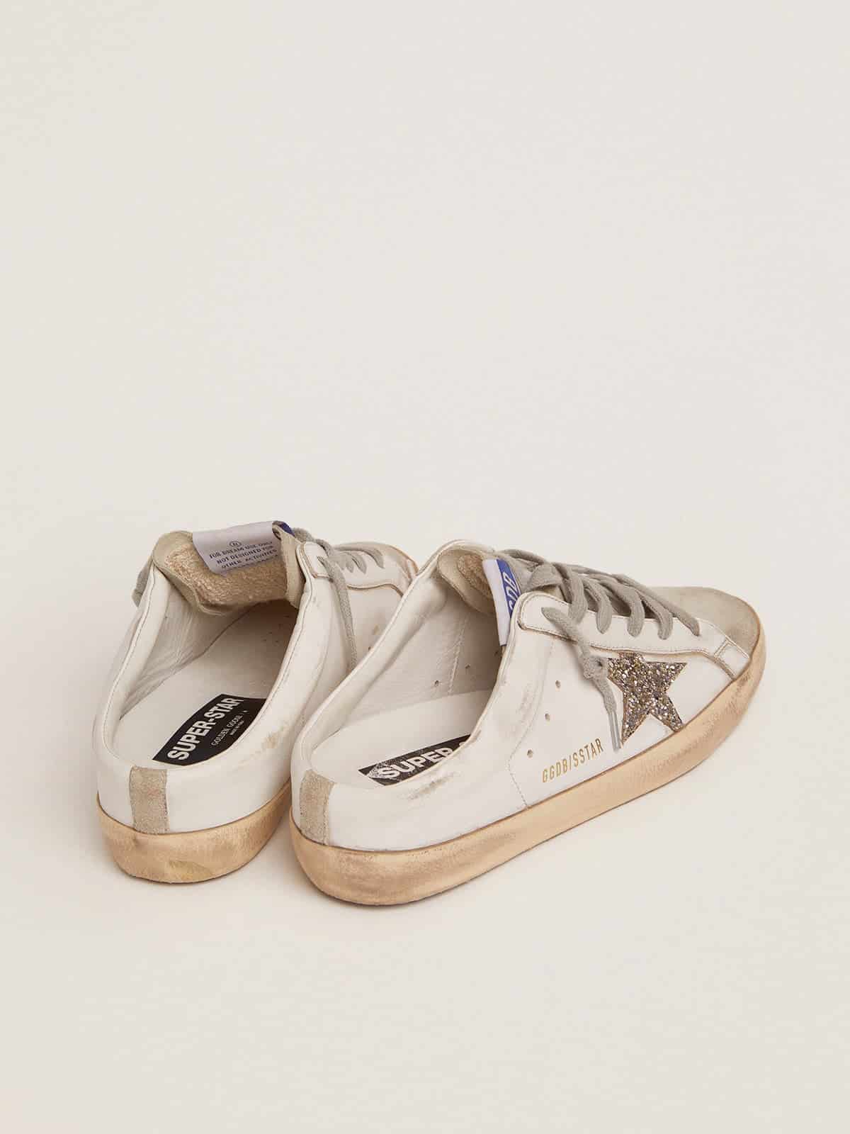 Golden Goose Super-Star Sabot With A Platinum Glitter Star And Suede Tongue