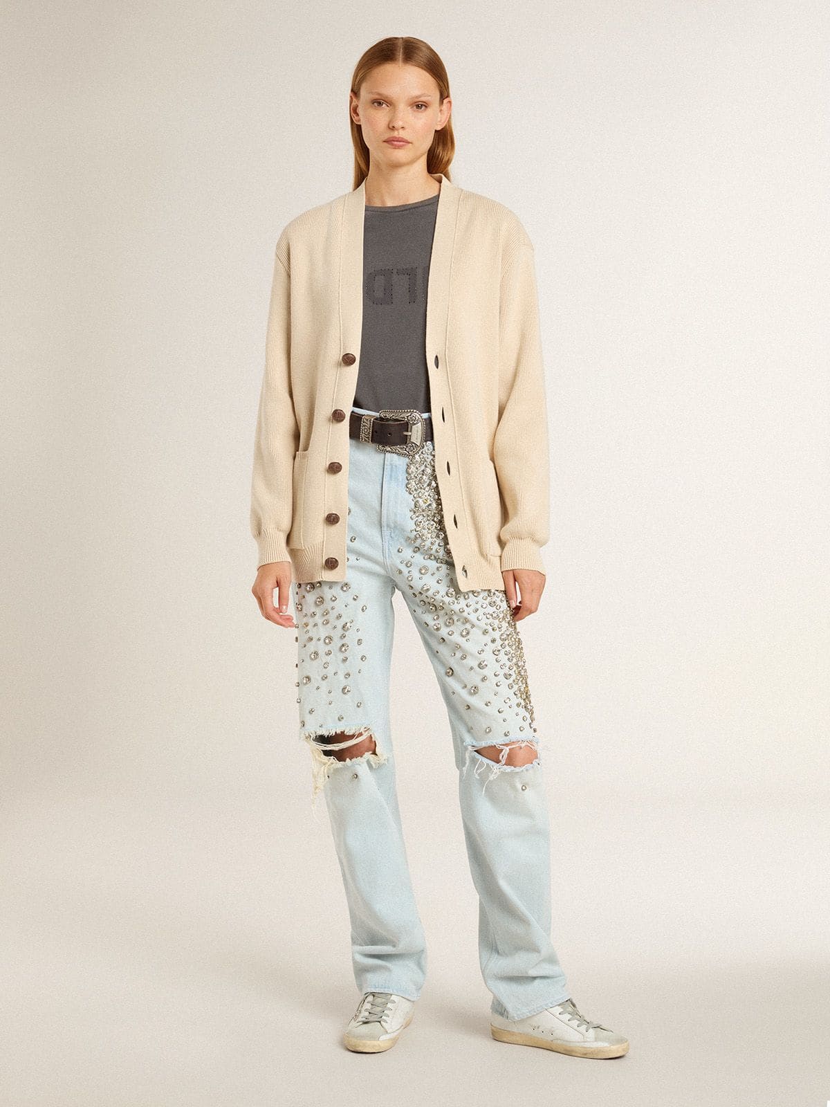 - Platin simli yıldız detayı ve buz grisi süet dil ile karakterize edilen zarif bir siluet.
