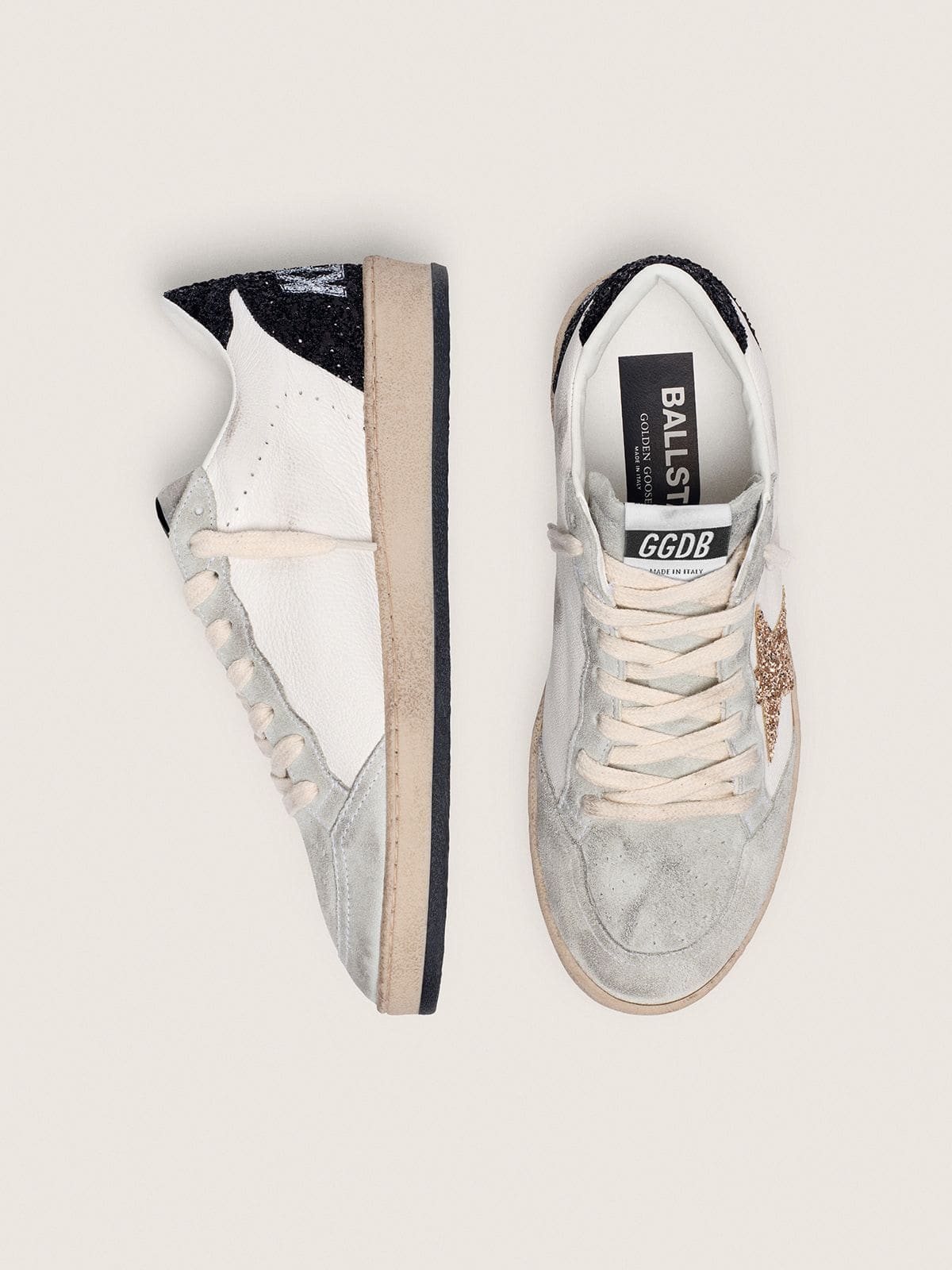 Golden Goose Women’s Ball Star In Nappa And Suede With Glitter Star And Black Heel Tab