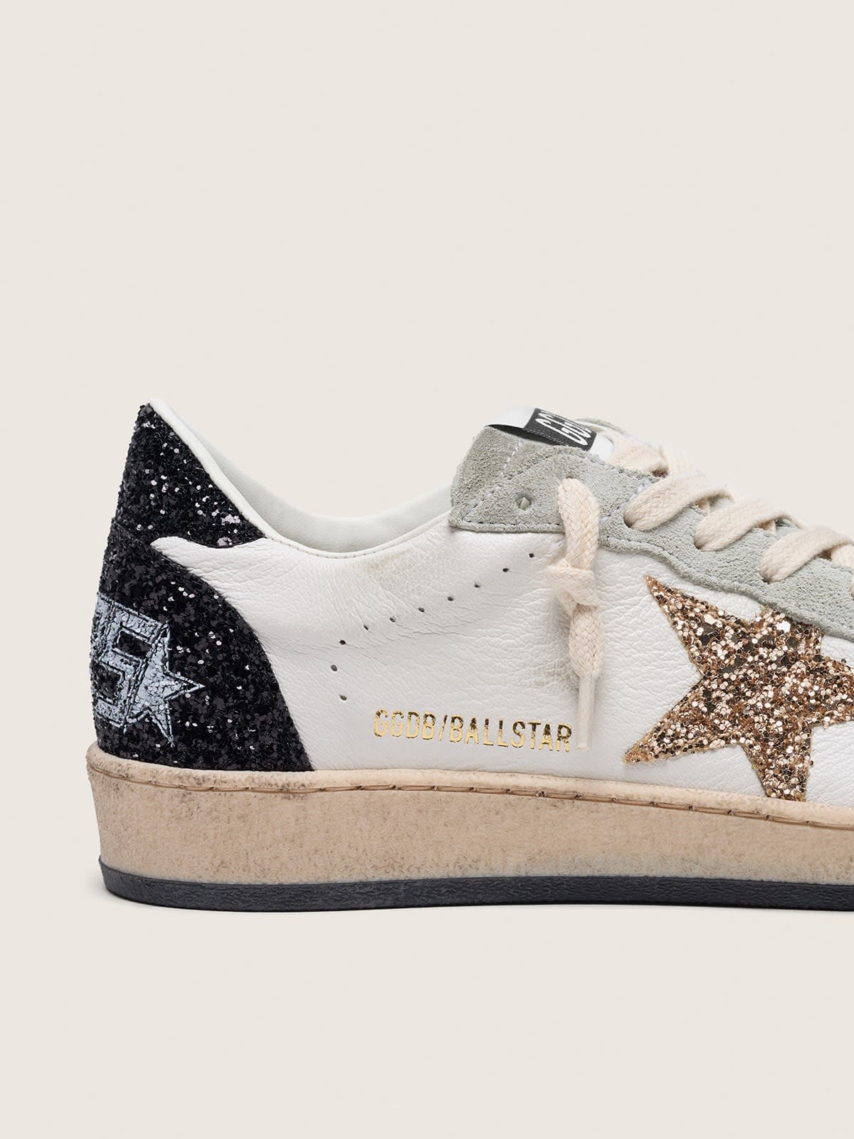 - Beyaz nappa deri üst, gold ışıltılı yıldız, siyah ışıltılı topuk tab ve arka insert
