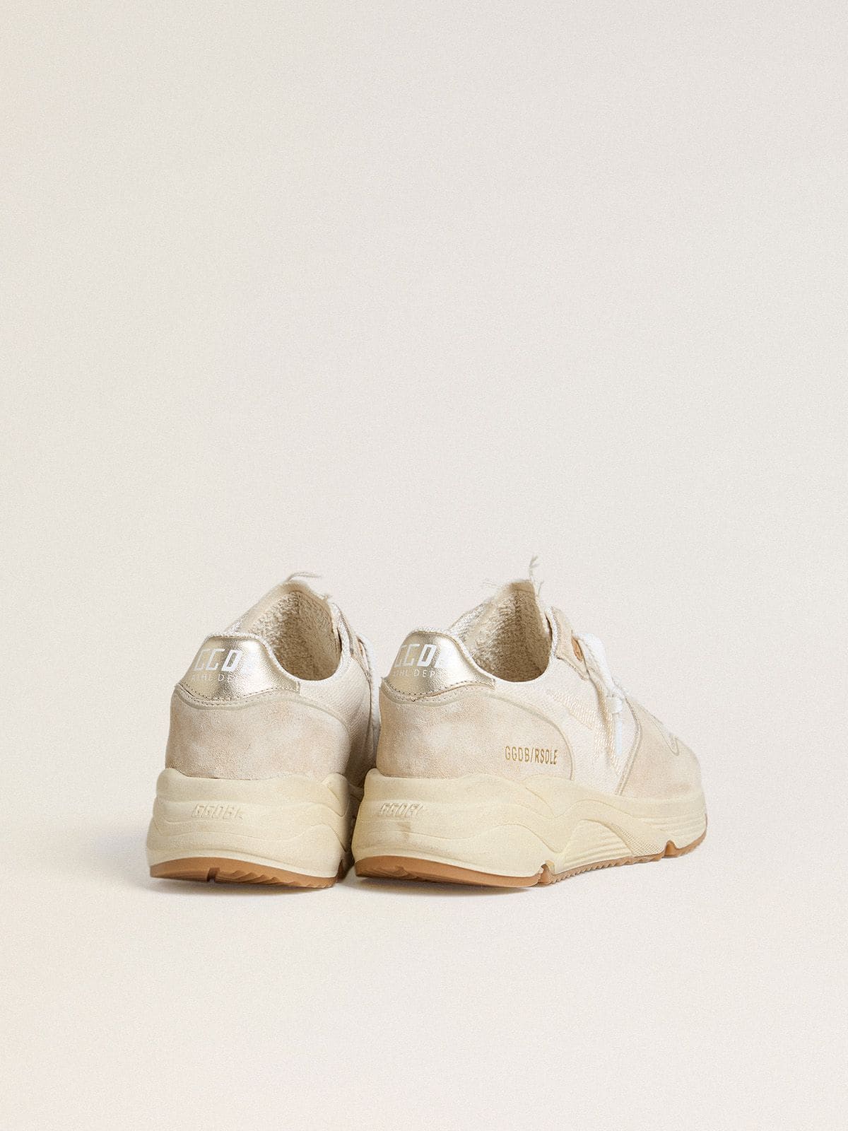 Golden Goose Women’s Running Sole In Canvas With Beige Star And Platinum Metallic Leather Heel Tab