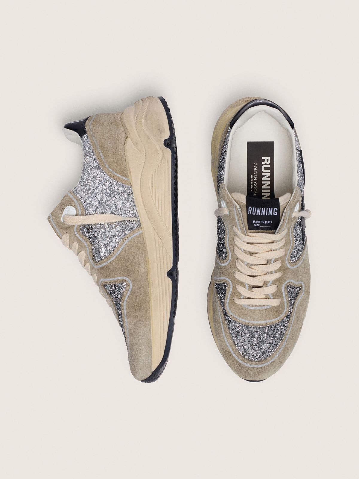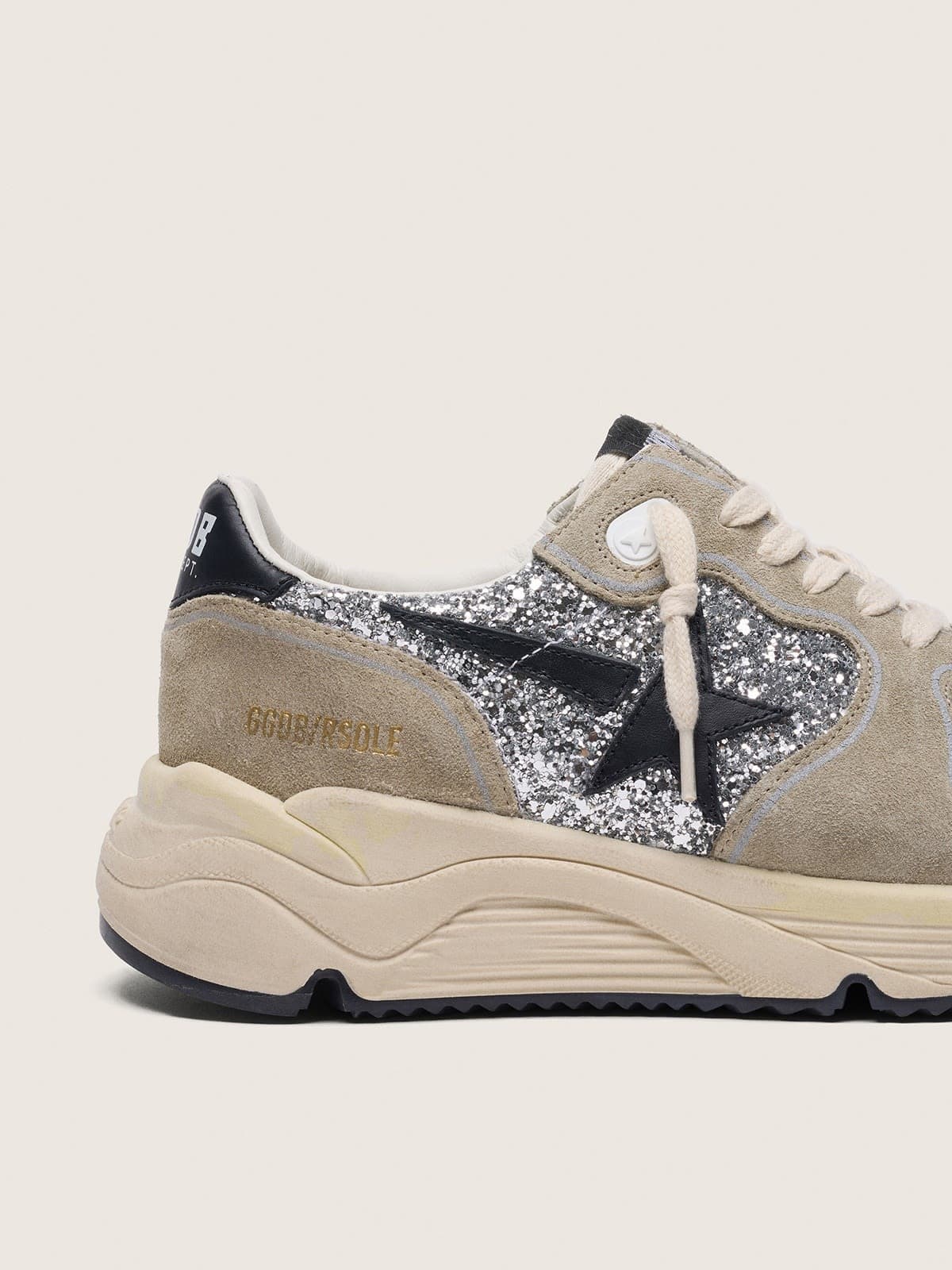 Golden Goose Women’s Running Sole In Silver Glitter And Dove Gray Suede