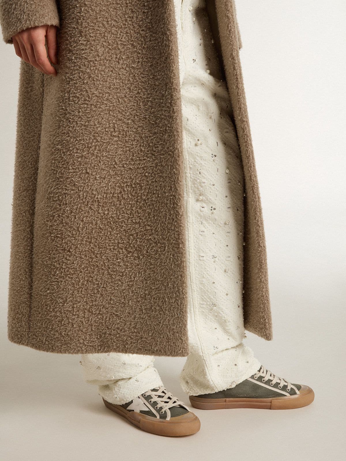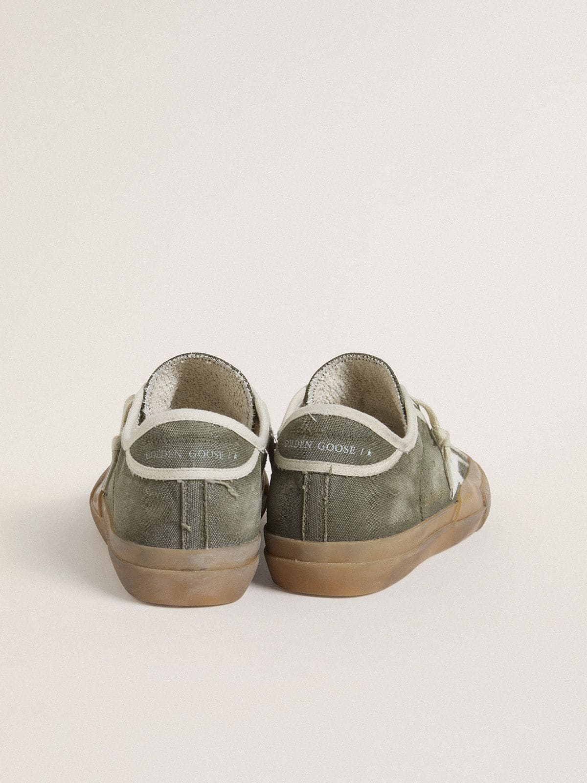 GWF00902.F007245.35919 model numaralı bu spor-şık ayakkabı, yeşil kanvas üst yüzey ve beyaz deri yıldız detayıyla dikkat çeker. İtalya'da el işçiliğiyle üretilmiş olan parça, vintage görünümlü çoklu foxing detaylarıyla zamansız bir estetik sunar.