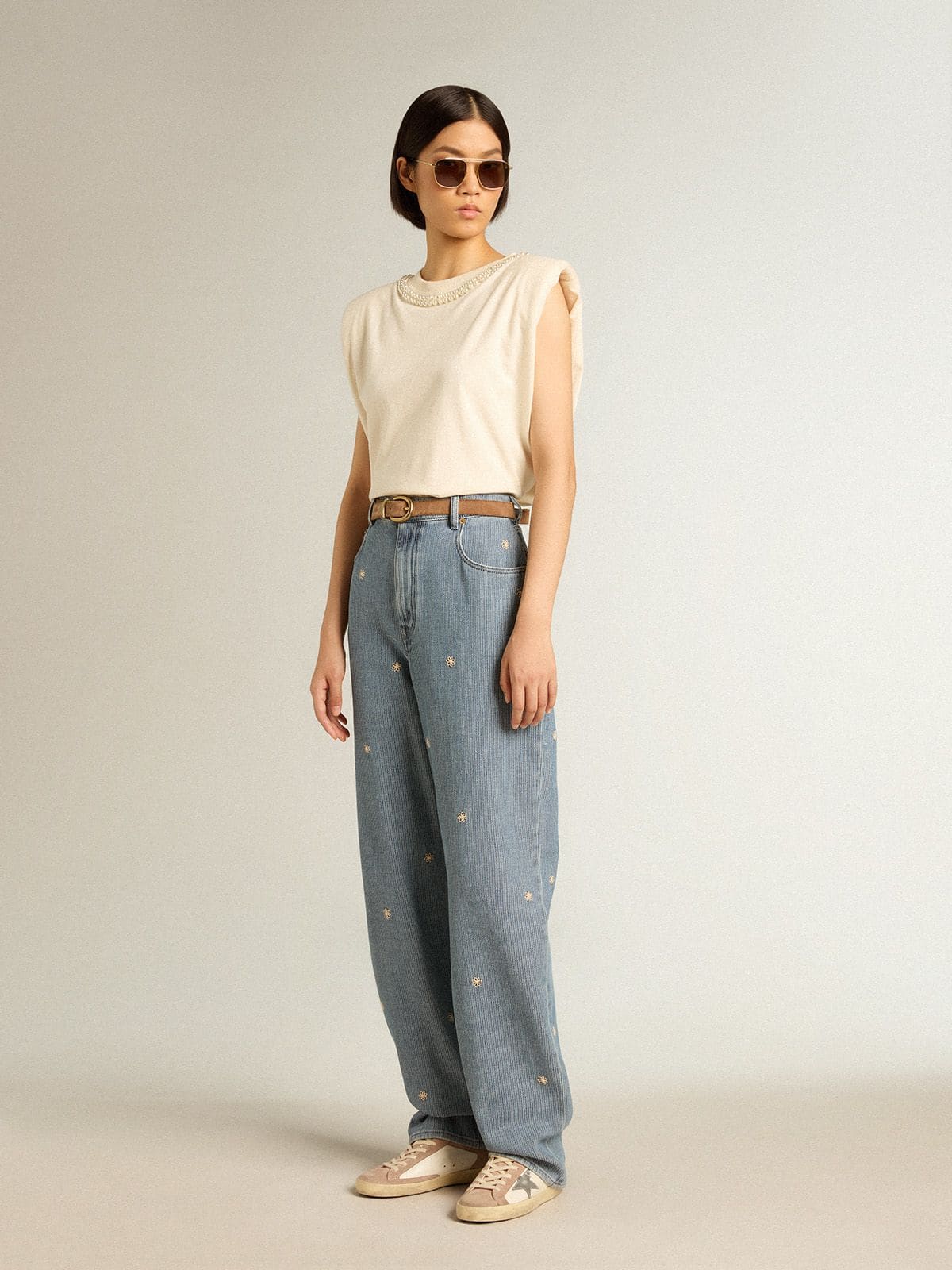 - Düşük profilli silueti, gümüş metalik deri yıldız detayı ve krem bağcıklarıyla modern bir retro hava sunar.