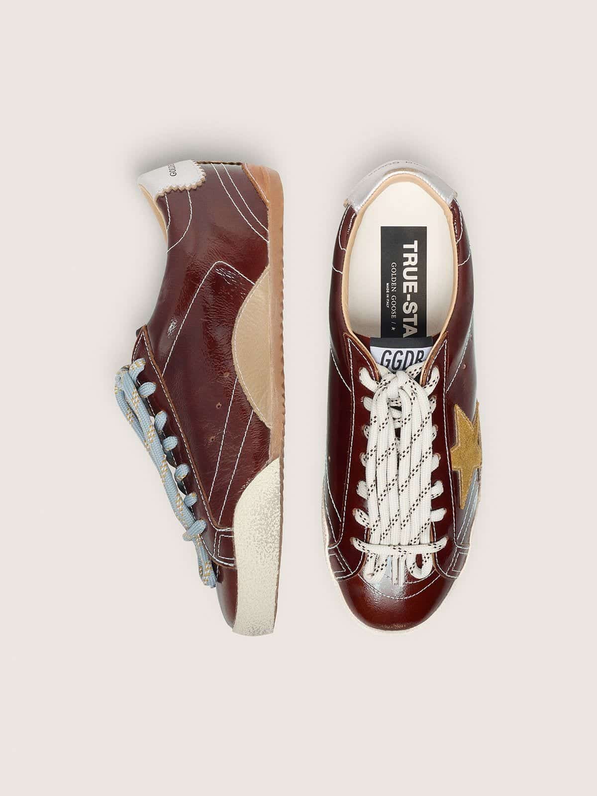 Golden Goose Women’s True-Star In Burgundy Naplak With Suede Star And Silver Nappa Heel Tab
