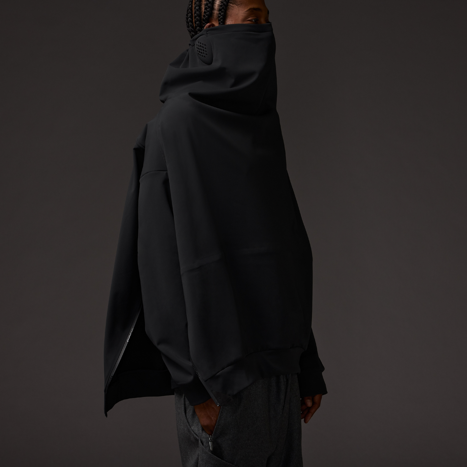Su itici malzeme ve fermuarlarla tasarlanmış bu ürün, günlük kullanım için idealdir. Dahili kulak manşeti ve ayarlanabilir elastik bungee boyun detayı ile konforlu bir uyum sunar.