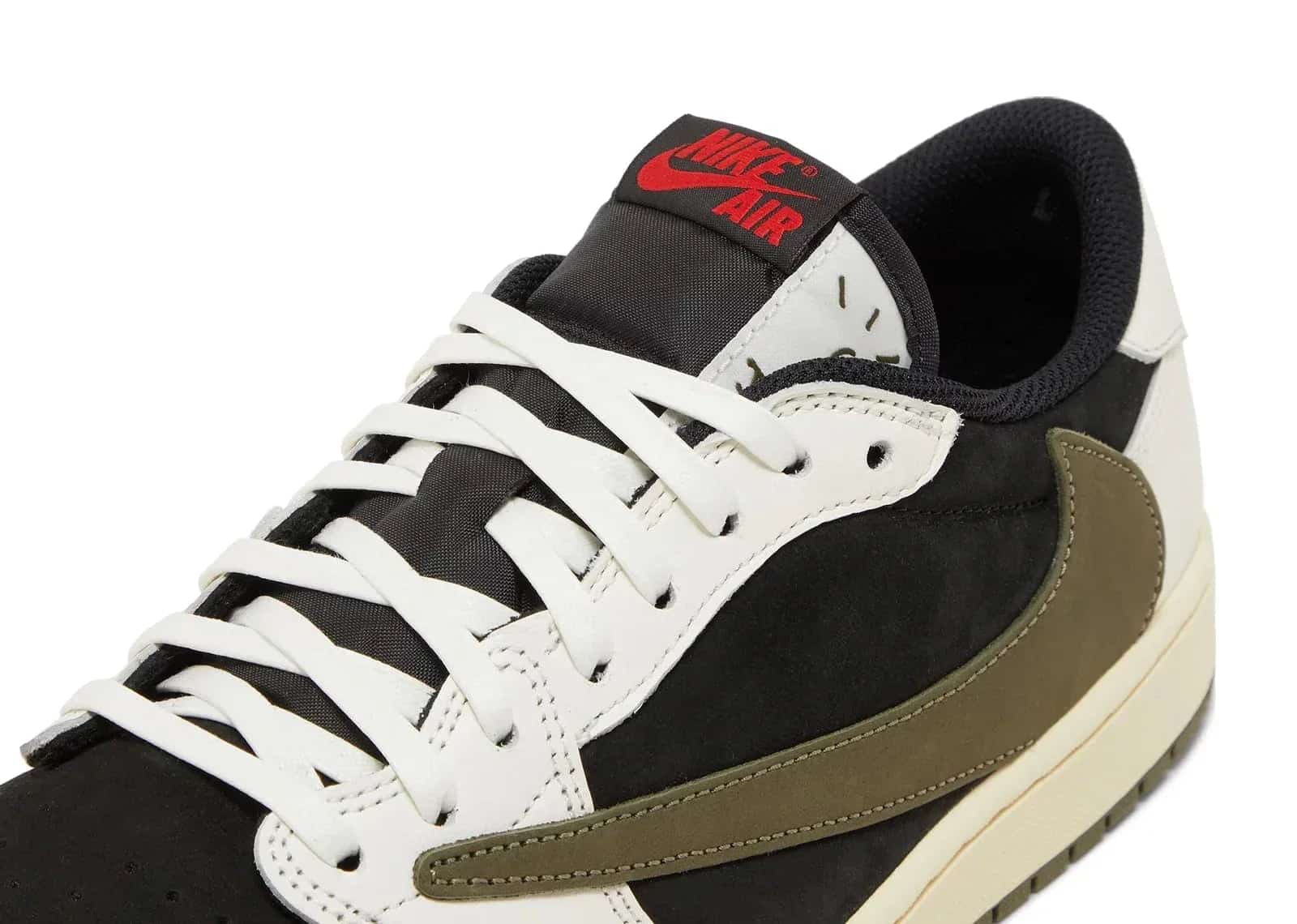 Travis Scott, 2022'de piyasaya sürdüğü Air Jordan 1 Retro Low Phantom'un ardından 2023'te yeni bir Air Jordan 1 Retro Low işbirliği ile geri döndü. Jordan 1 Retro düşük OG SP Travis Scott Olive, yalnızca kadın numaralarıyla özel olarak tasarlanmıştır.