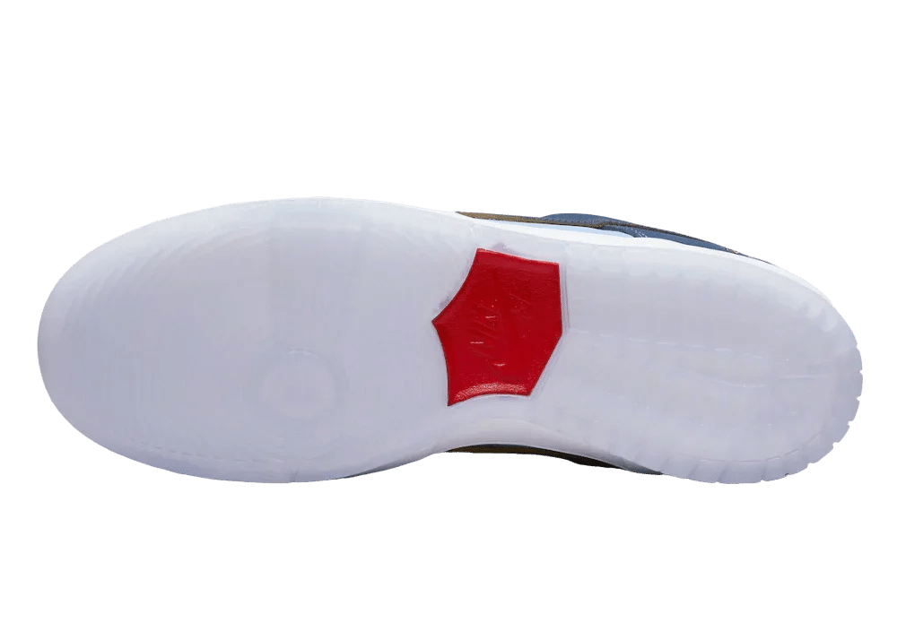 Nike SB Dunk Low Pro Why So Sad, zarif detayları ve işçilik kalitesi ile öne çıkıyor. Beyaz Fat-style bağcık sistemi, ayakkabının genel estetiğine uyum sağlarken, yan topukta yer alan işlemeli tavuk figürü, kaykay kültürüne göndermede bulunuyor.