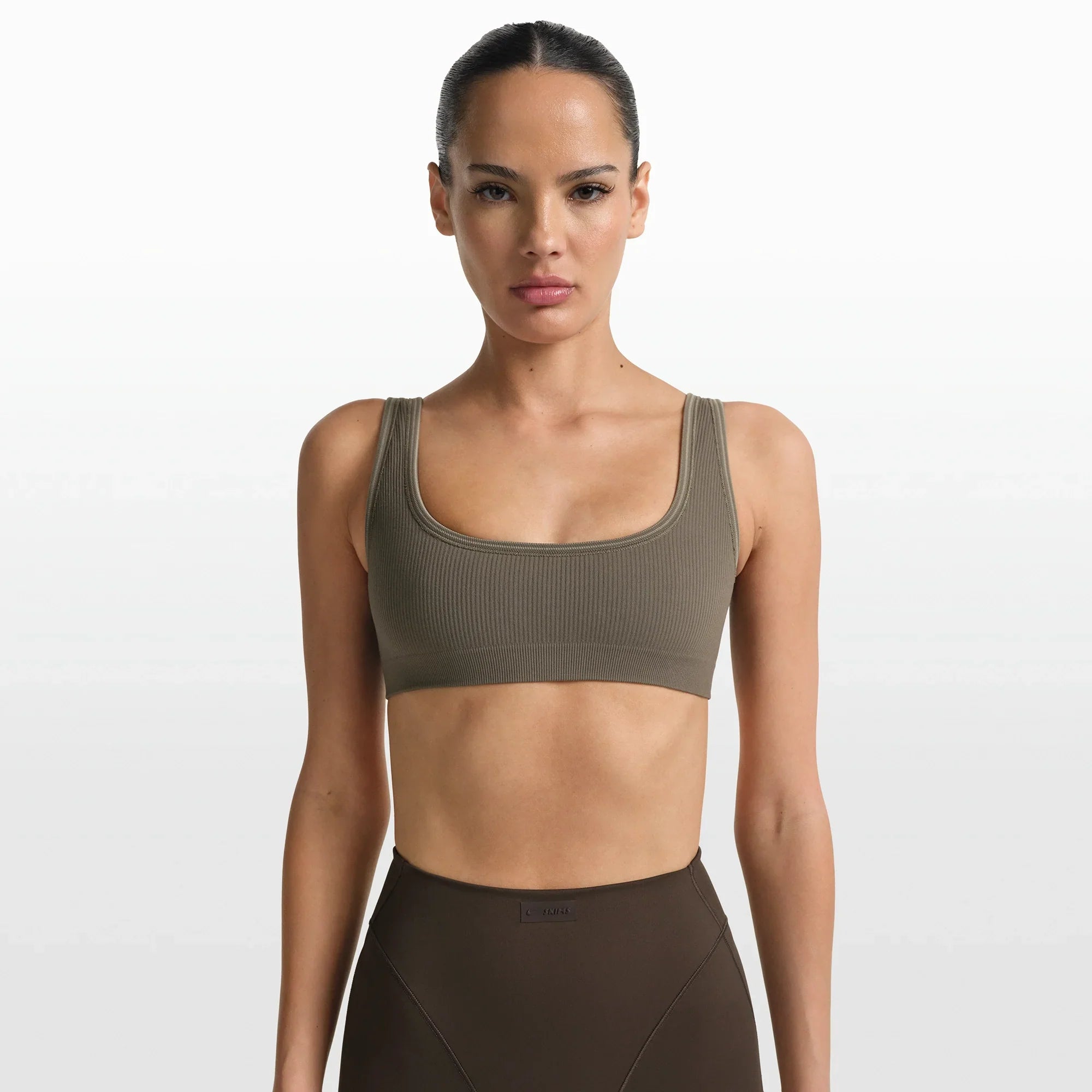 NikeSKIMS RIBBED SEAMLESS MICRO SCOOP BRA | DUSTY OAKMOSS