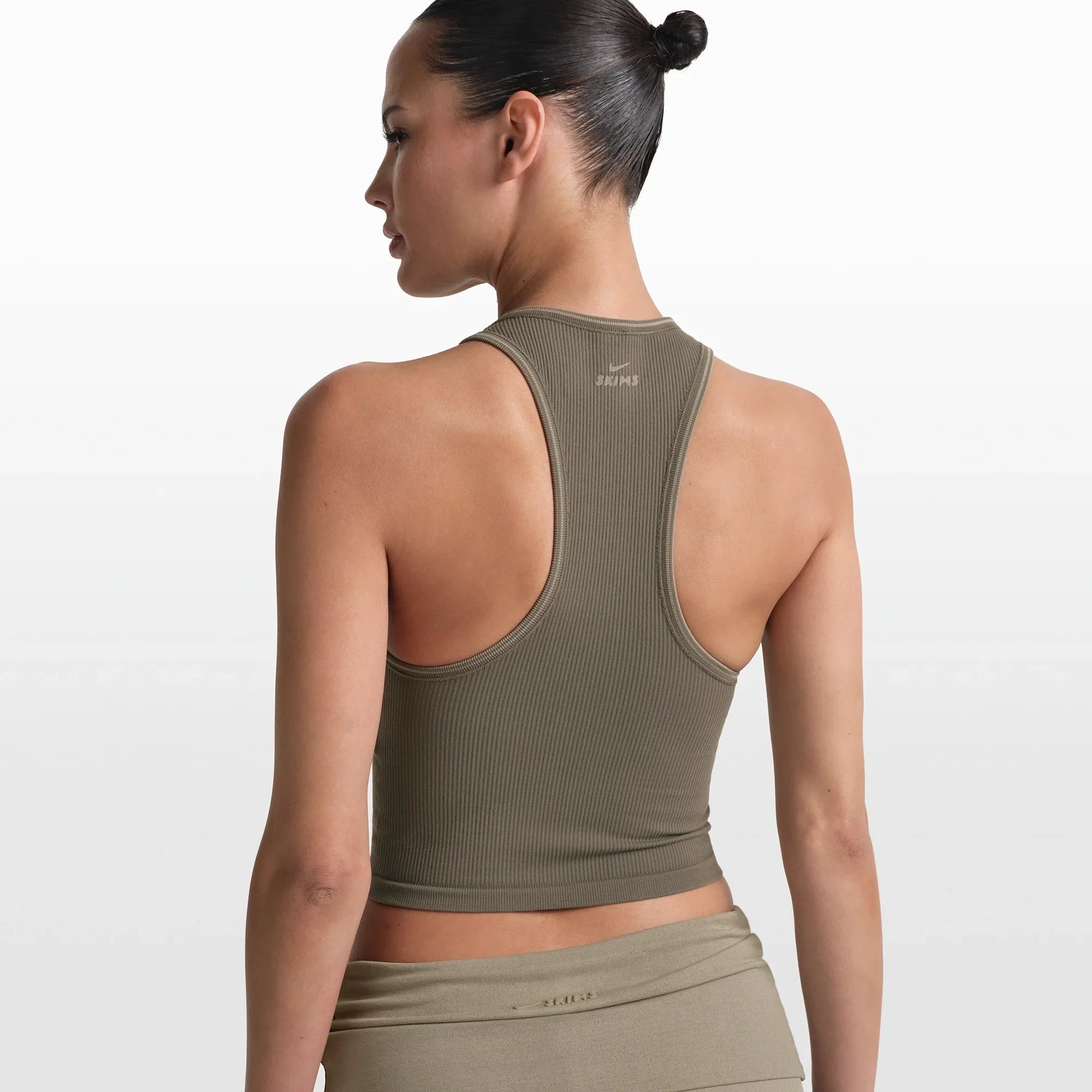 NikeSKIMS RIBBED SEAMLESS RACER FRONT TANK | DUSTY OAKMOSS