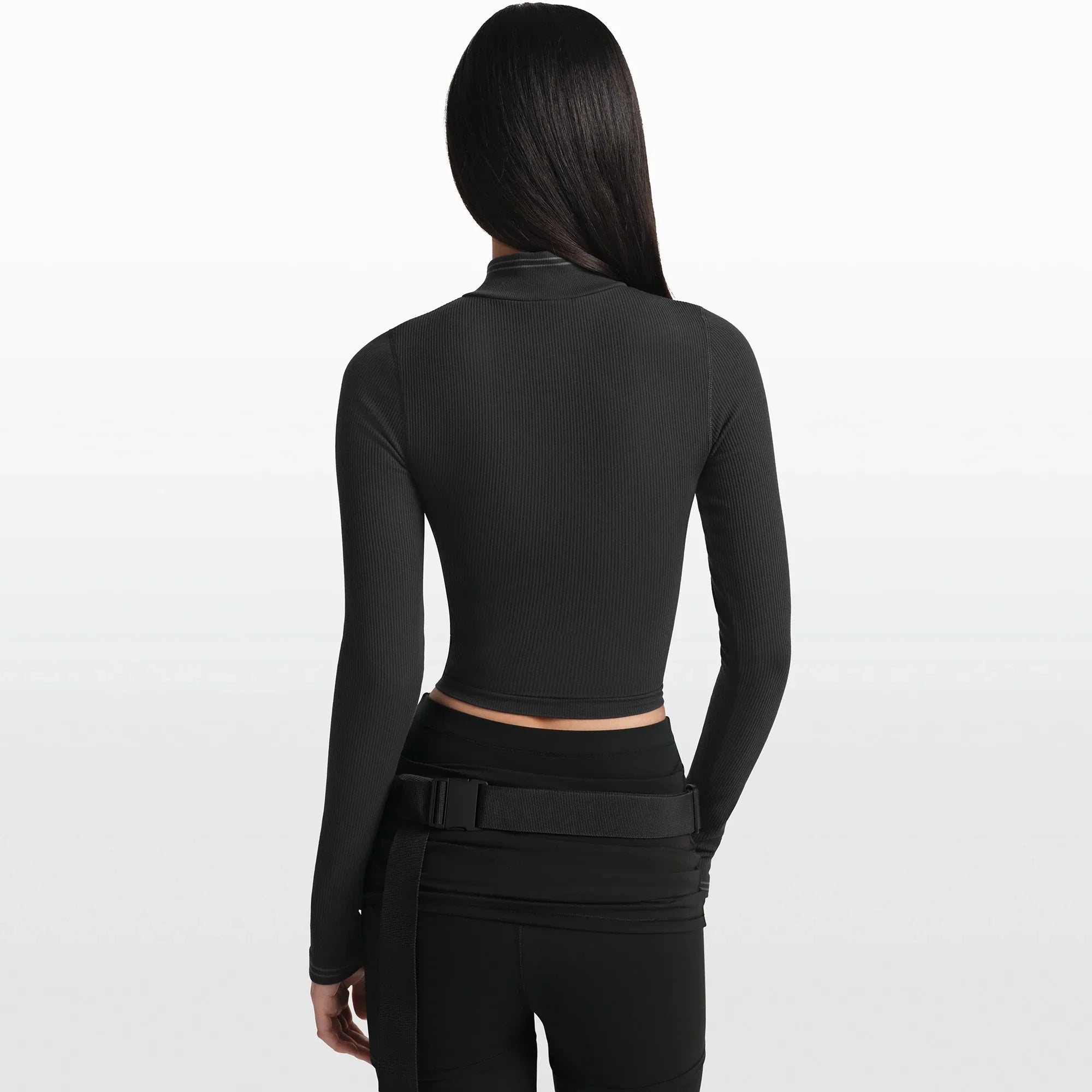 NikeSKIMS RIBBED SEAMLESS ZIP UP CROP JACKET | OBSIDIAN