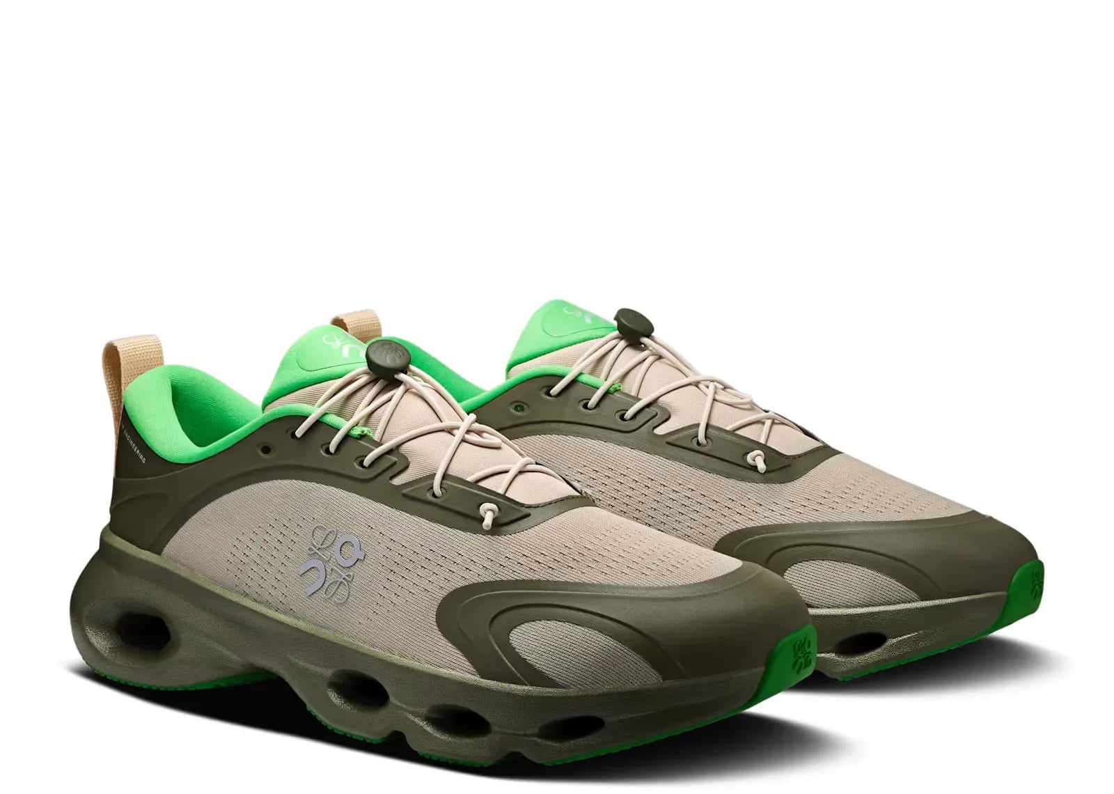 On LOEWE, Sneaker Baker'da bulunan On Running Cloudsolo LOEWE Khaki Green Sand modeliyle koleksiyonuna yeni bir parça ekliyor. Bu özel model, Khaki Green/Sand tonlarındaki seçkin tasarımıyla dikkat çekiyor.