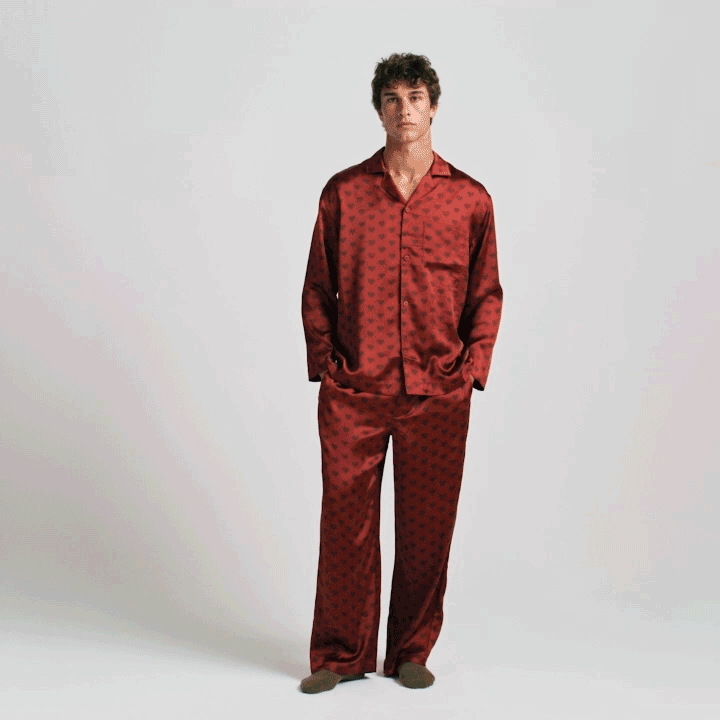 SKIMS SATEEN SLEEP MENS LONG SLEEP SET | RED HEART HALFDROP