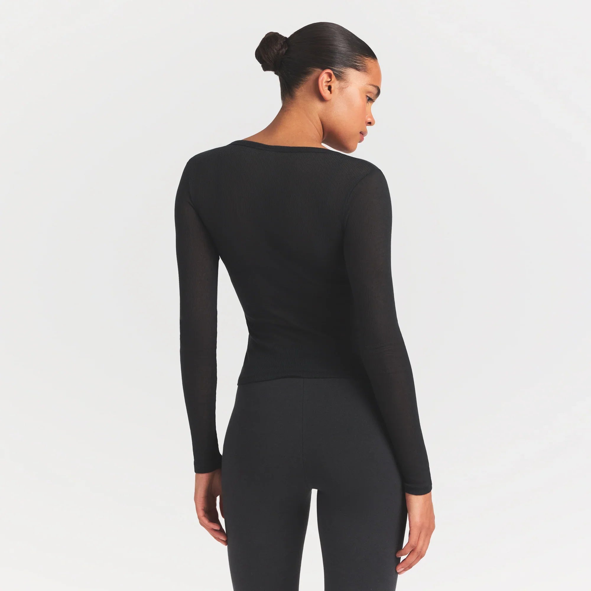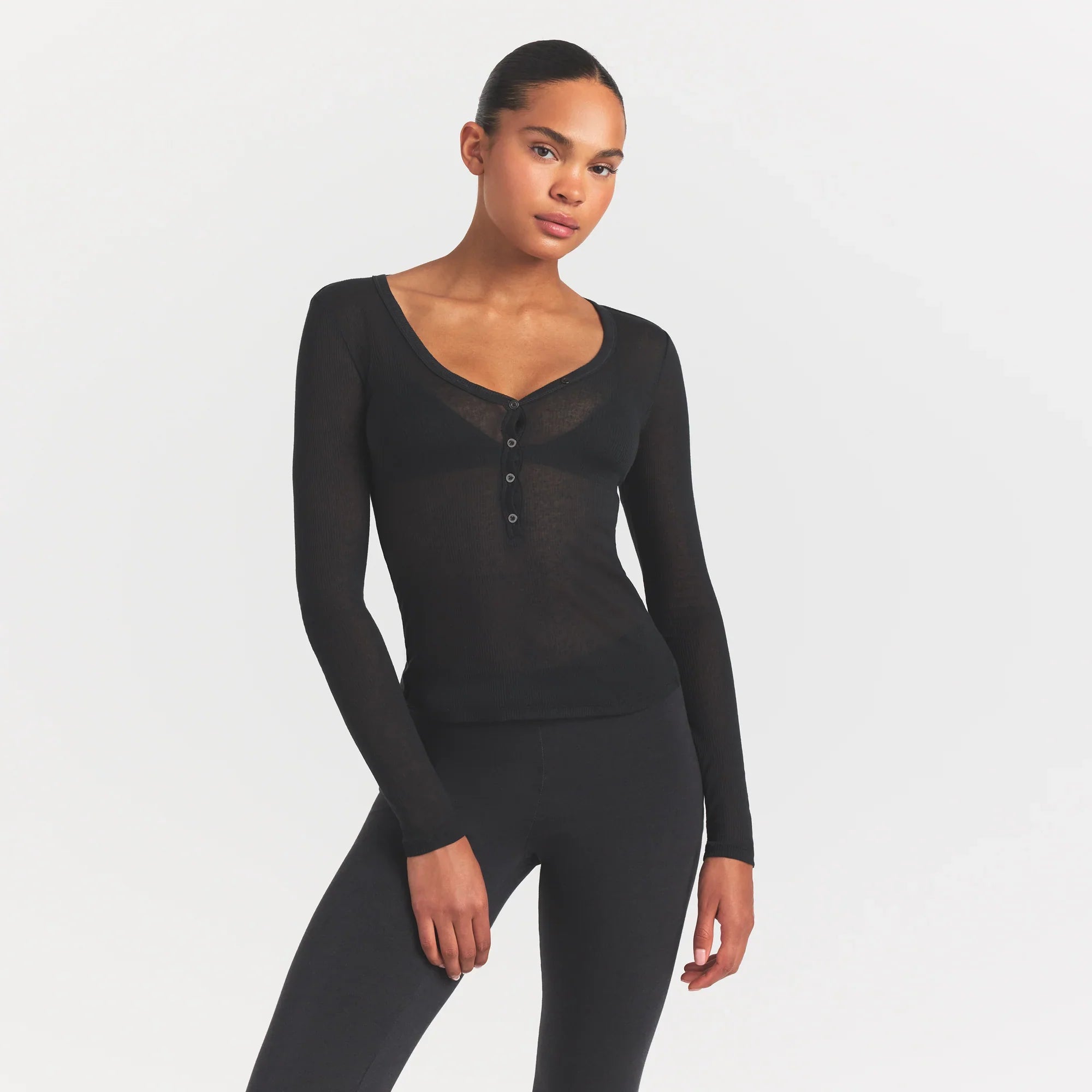 SKIMS SHEER RIB HENLEY | SOOT
