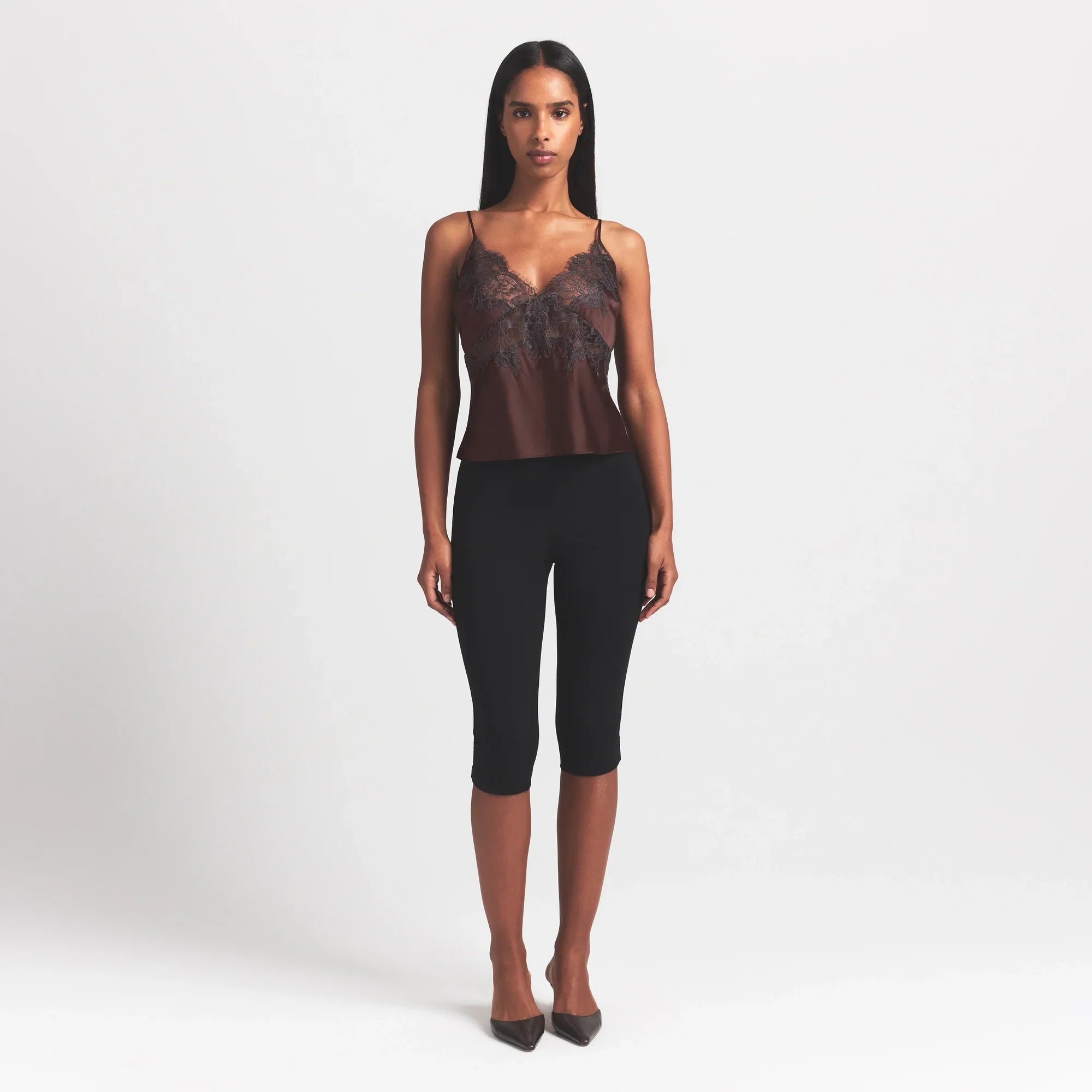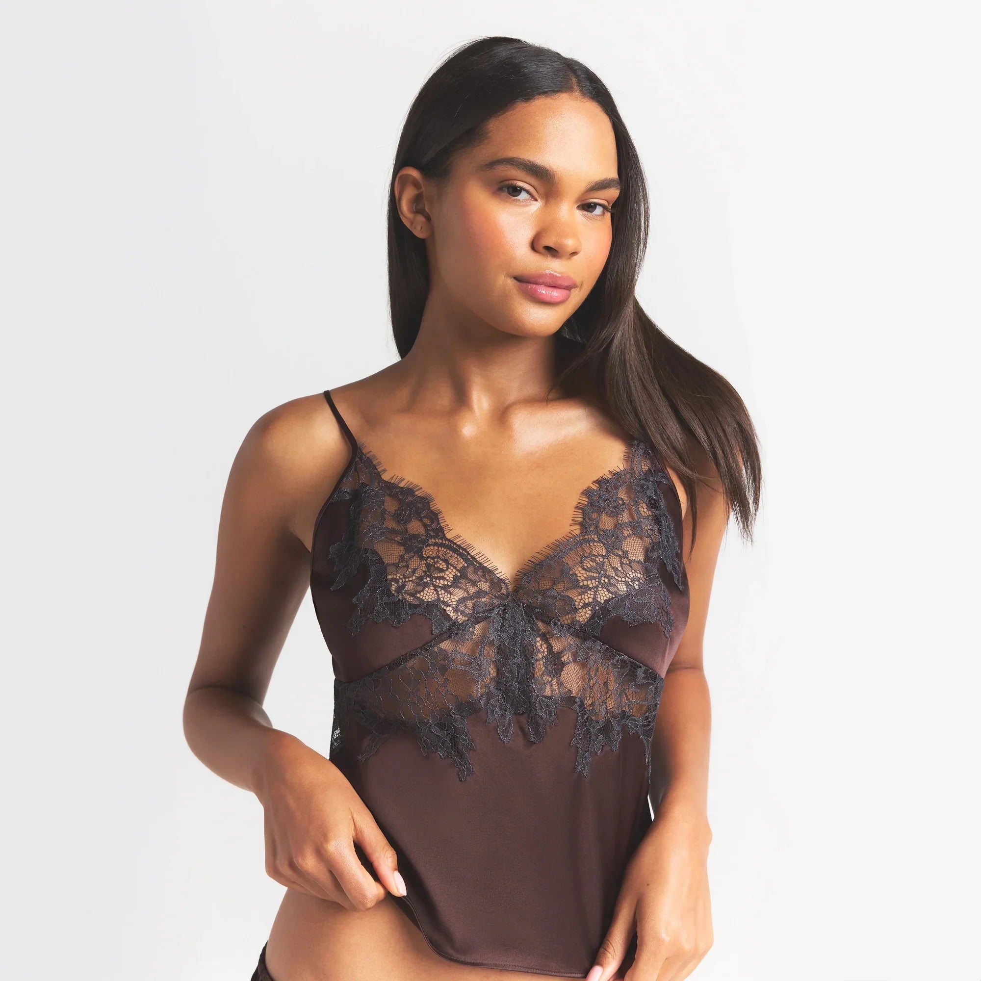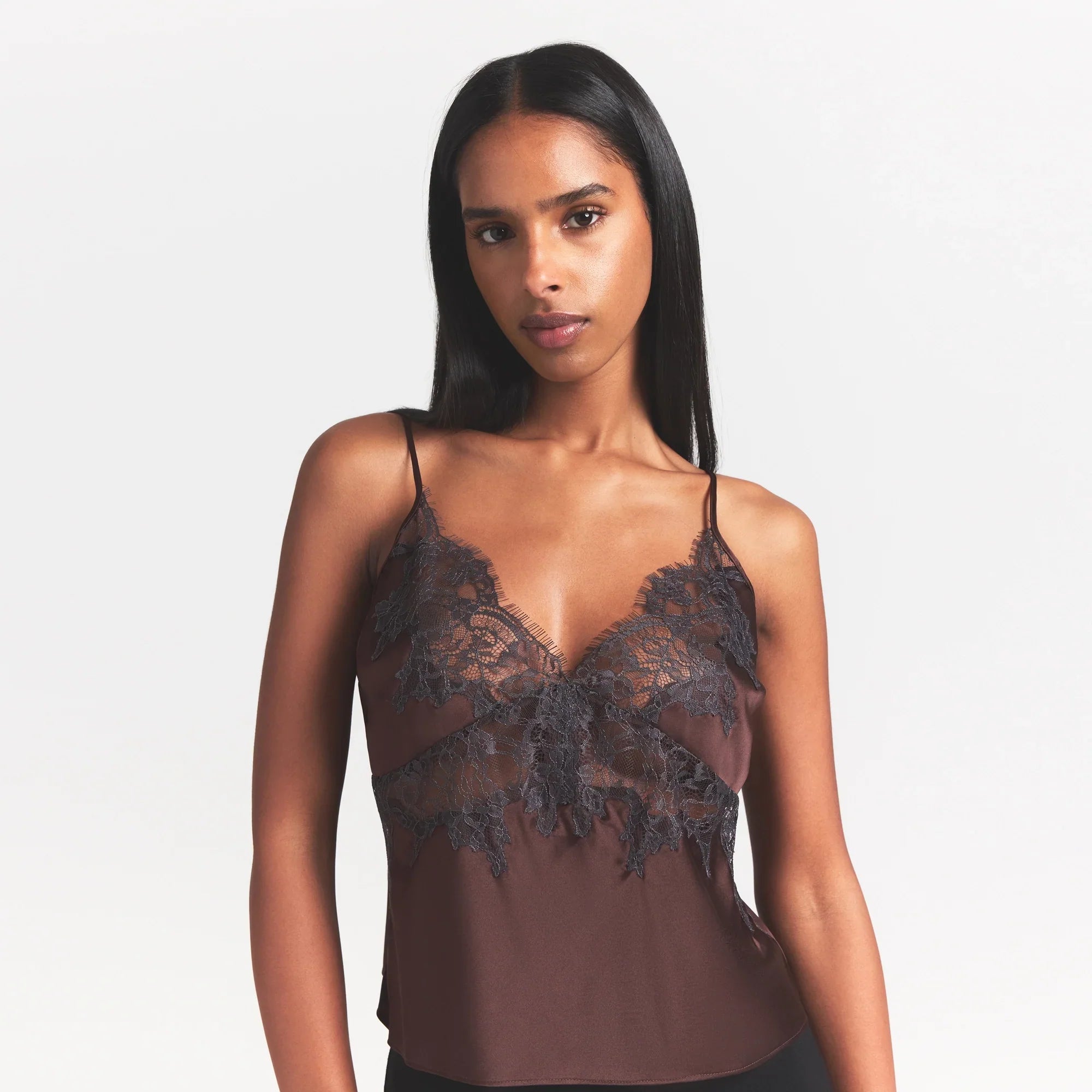 SKIMS SILK LACE CAMI | ESPRESSO CONTRAST