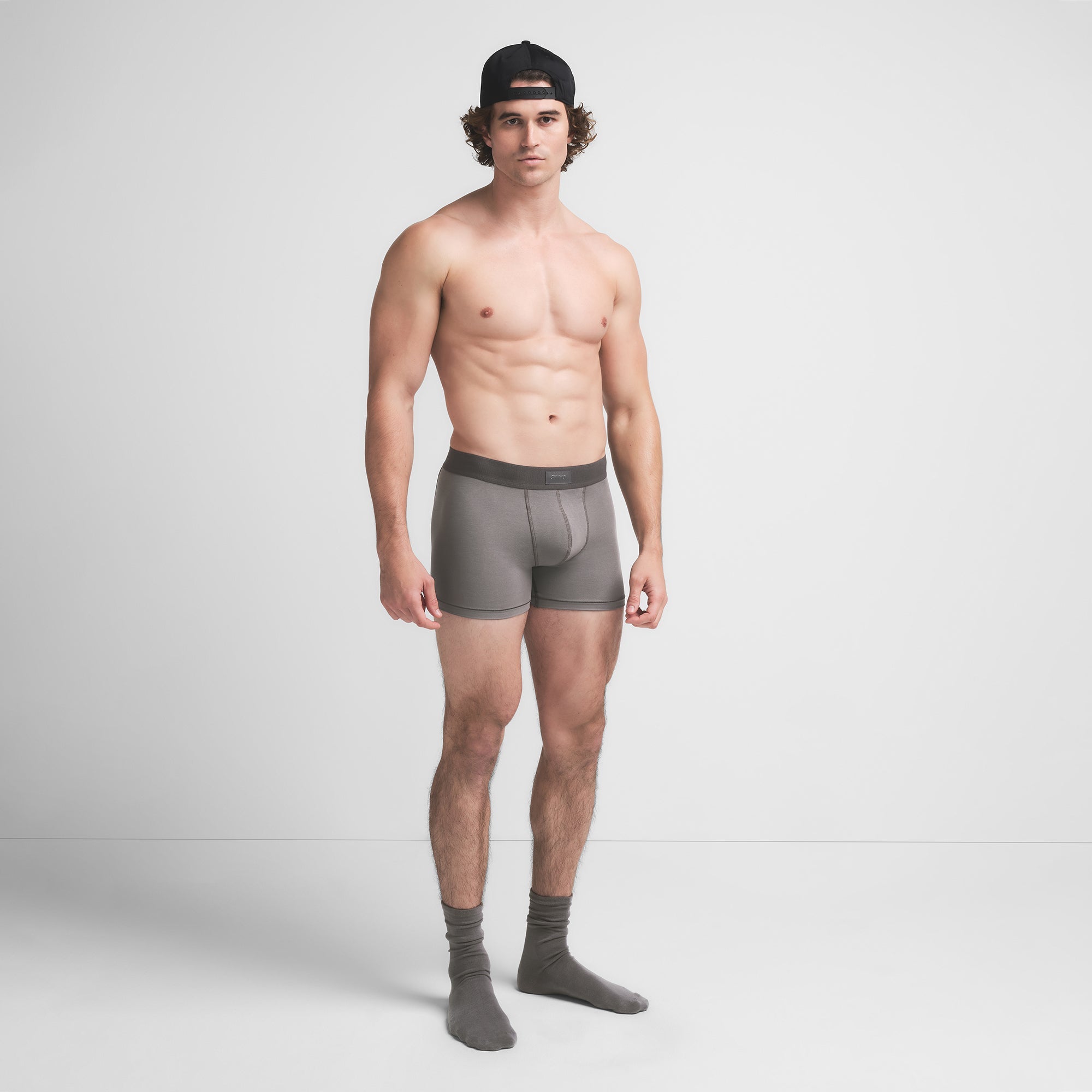 SKIMS COTTON MENS 3″ BOXER BRIEF | WASHED GUNMETAL