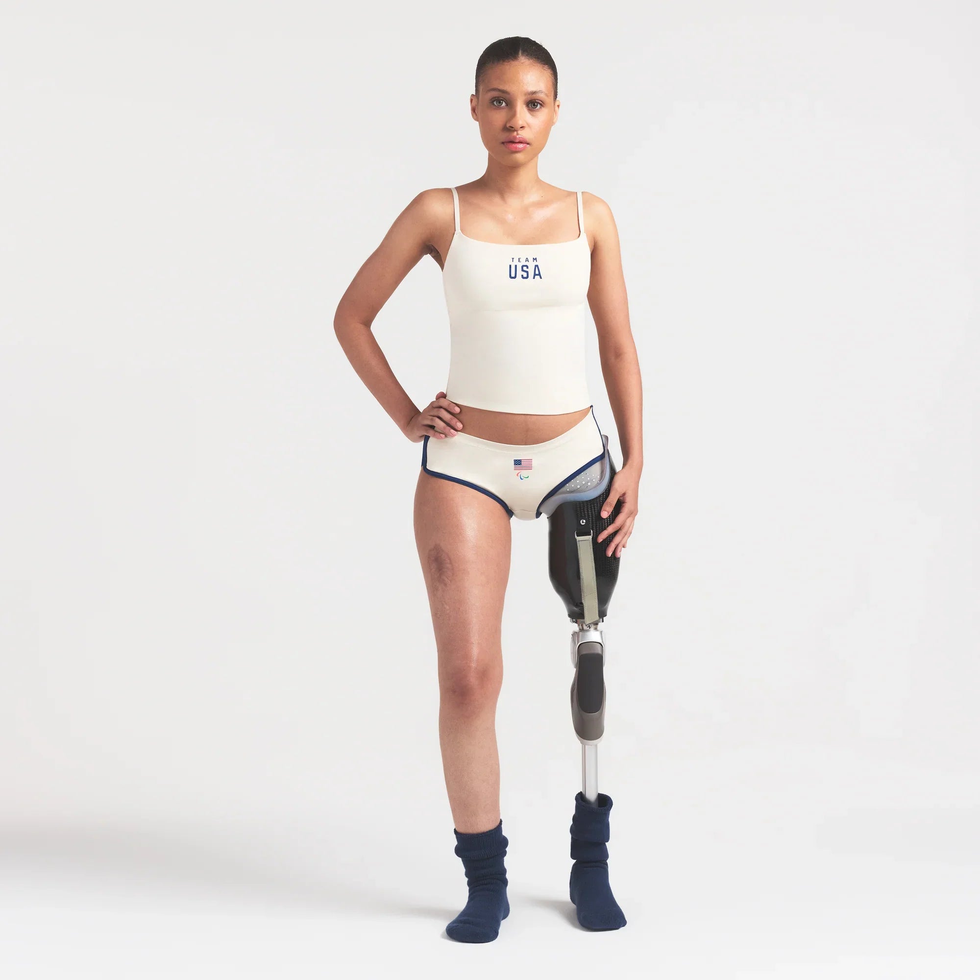 SKIMS FOR TEAM USA COTTON JERSEY PARALYMPIC DOLPHIN BOY SHORT | ECRU