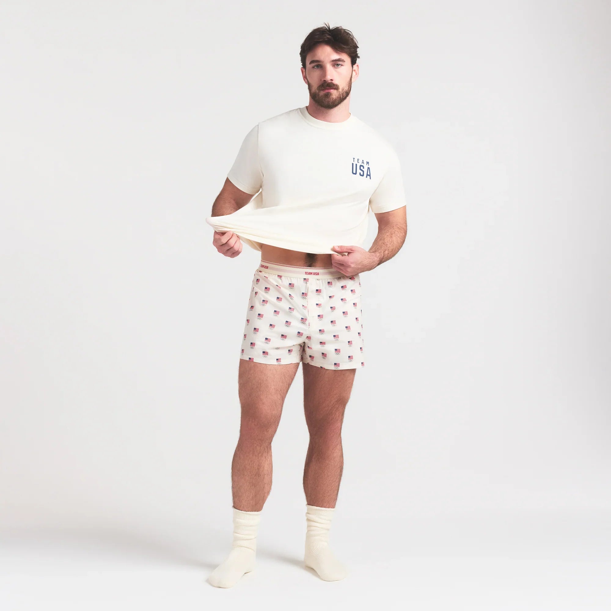 SKIMS FOR TEAM USA COTTON POPLIN MENS OLYMPIC BOXER | ECRU