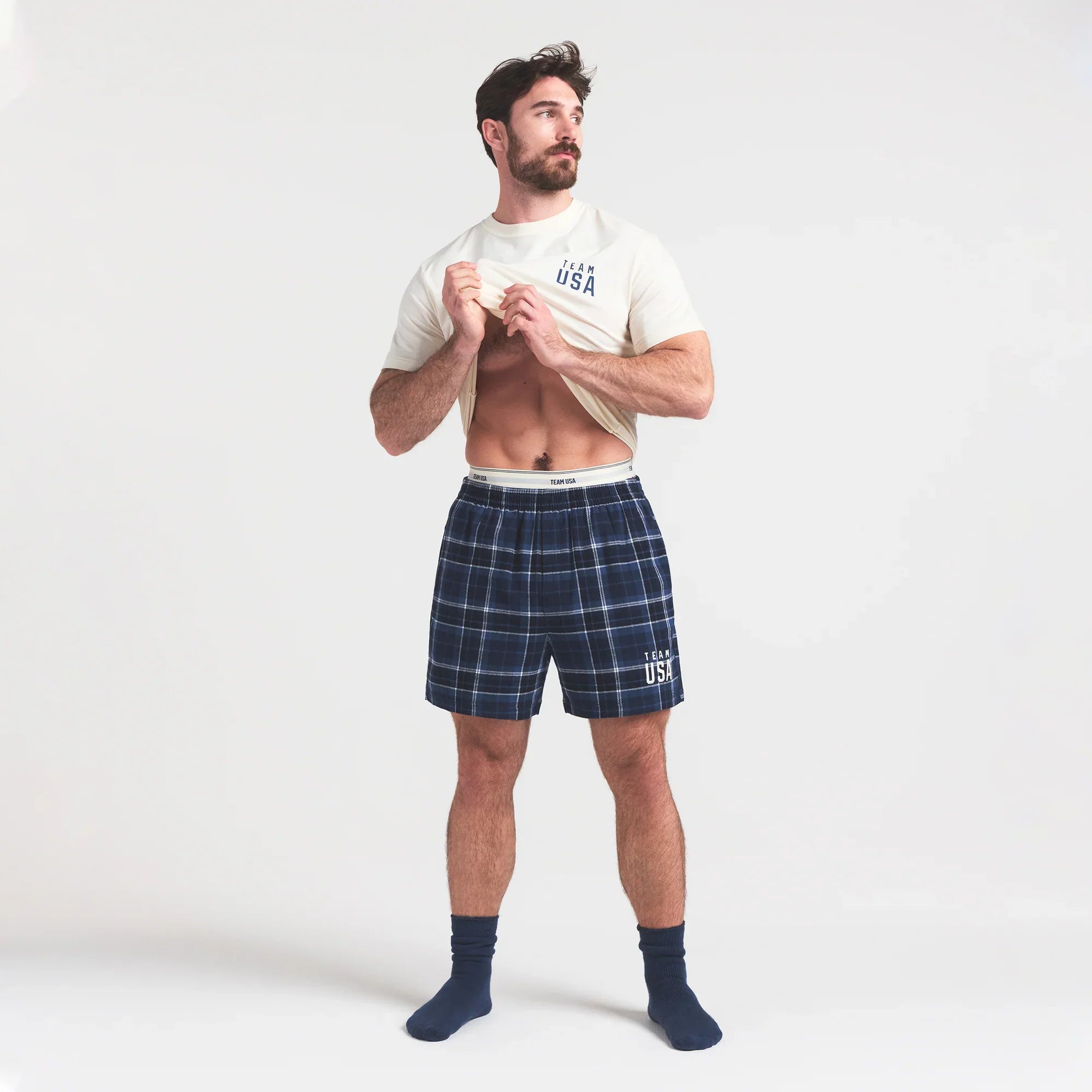SKIMS FOR TEAM USA FLANNEL SLEEP MENS OLYMPIC SHORT | NAVY PLAID
