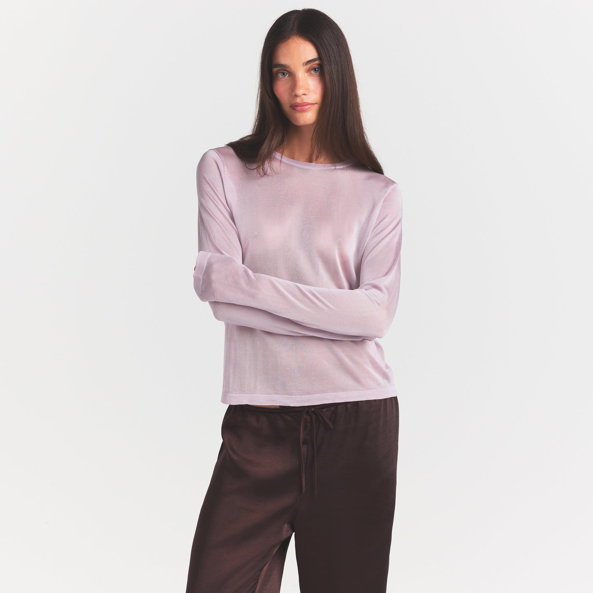 SKIMS SLINKY KNIT CREW NECK LONG SLEEVE TOP | IRIS MICA